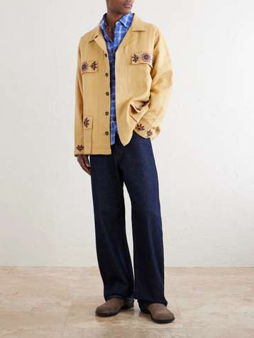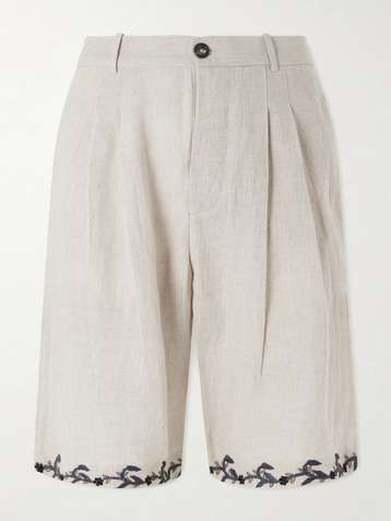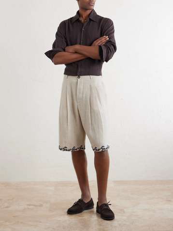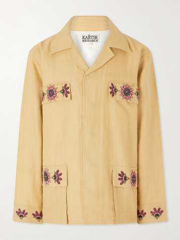 Layered Appliquéd Embellished Embroidered Pinstriped Linen Shirt