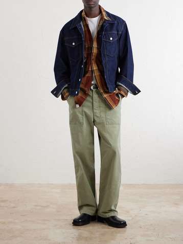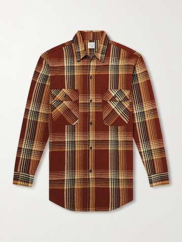 Button-Down Collar Checked Cotton-Chambray Shirt
