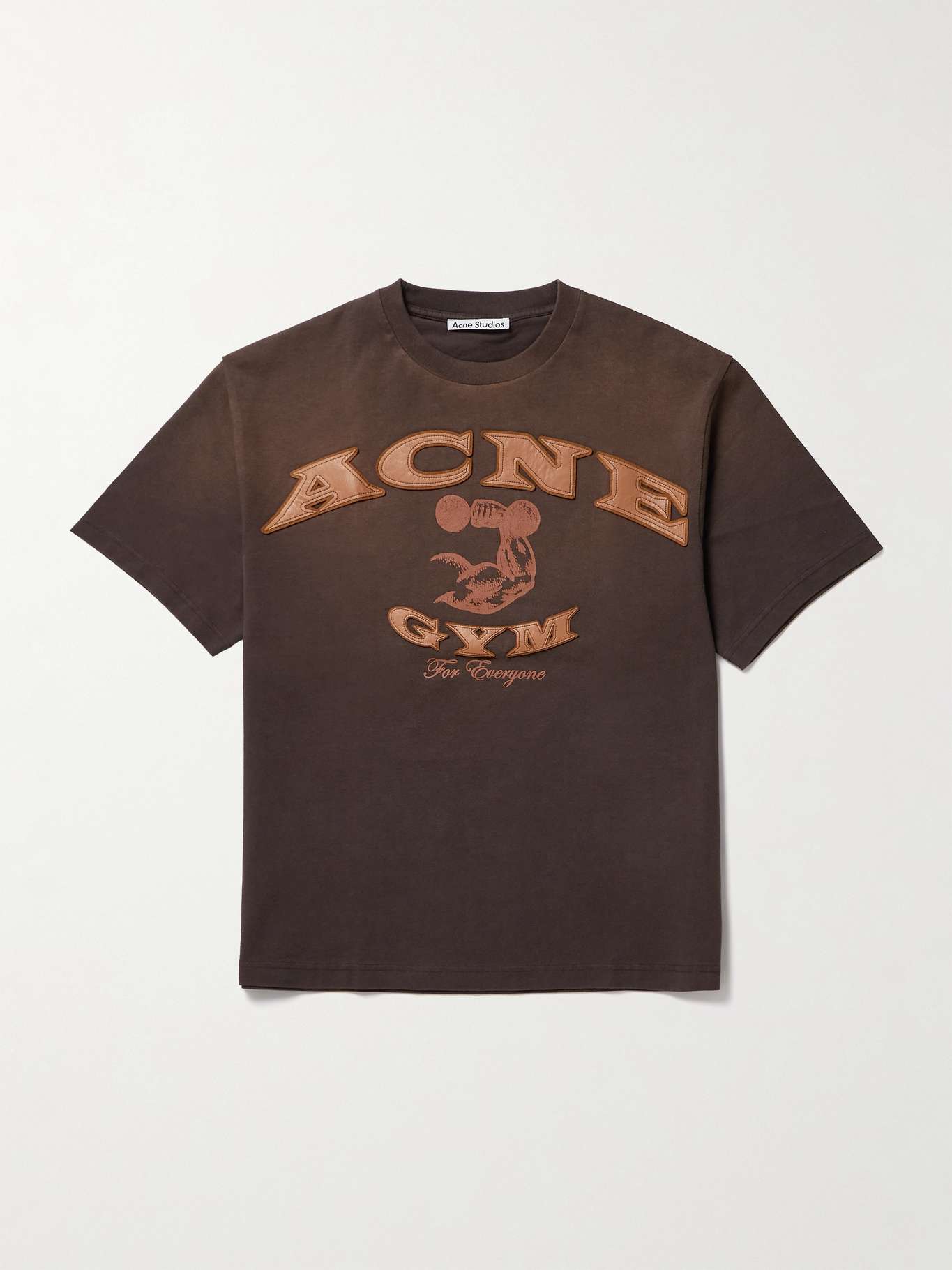 Acne Studios' 'Exford U' T-shirt takes its cues from the apparel of old-school body-building gyms. It's cut from mid-weight cotton-jersey and printed with a 'Gym Bro' graphic, framed by logo appliqués.