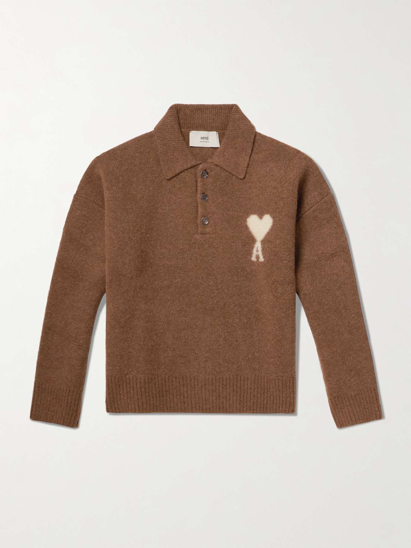 AMI PARIS' sweater is knitted for a slightly loose fit from soft alpaca and wool-blend with a distinctive 'Ami De Coeur' logo intarsia in contrast threads. The polo-style collar and buttoned placket lend it a smarter feel.