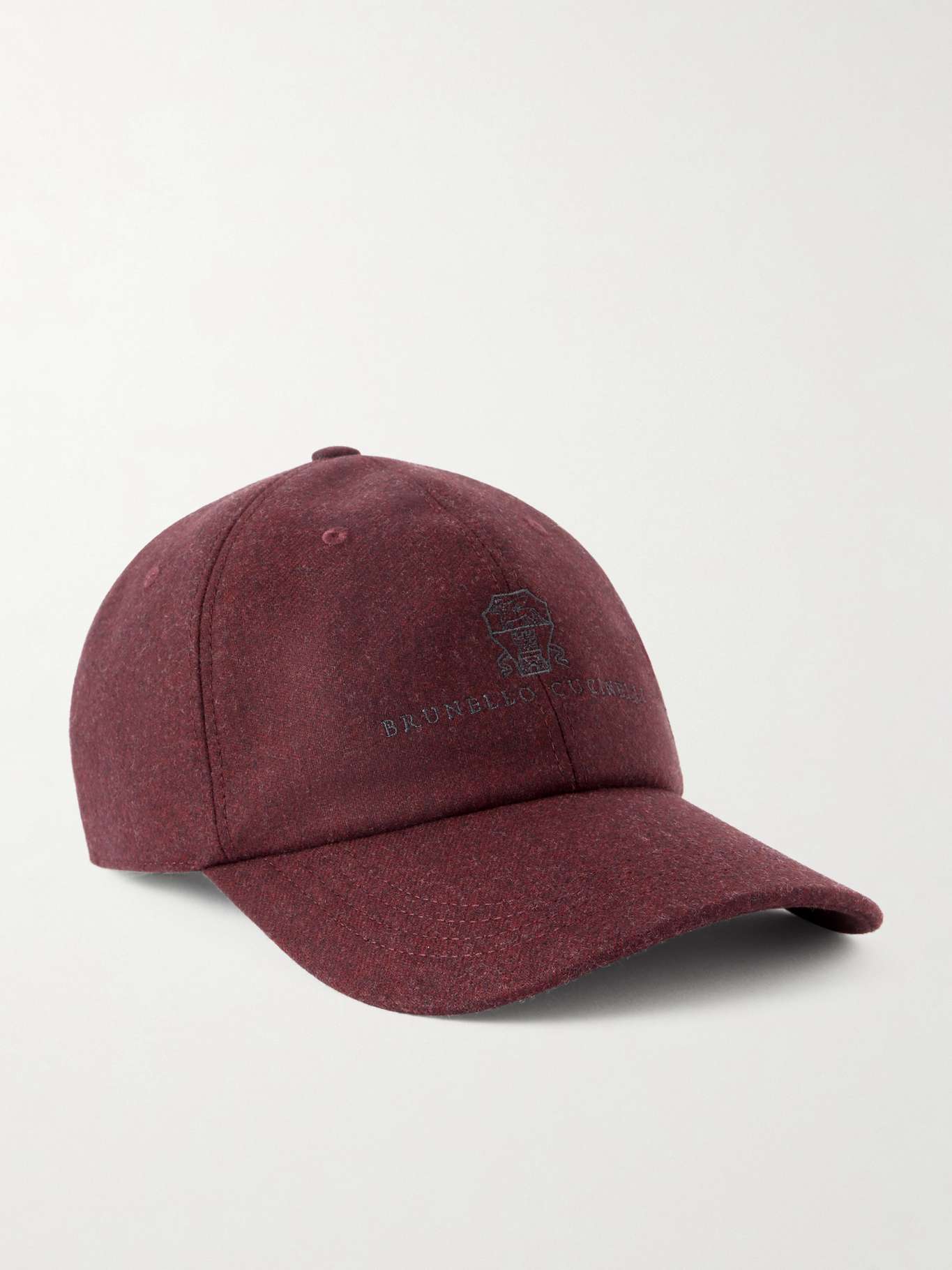 BRUNELLO CUCINELLI Logo-Embroidered Leather-Trimmed Wool-Flannel Baseball Cap