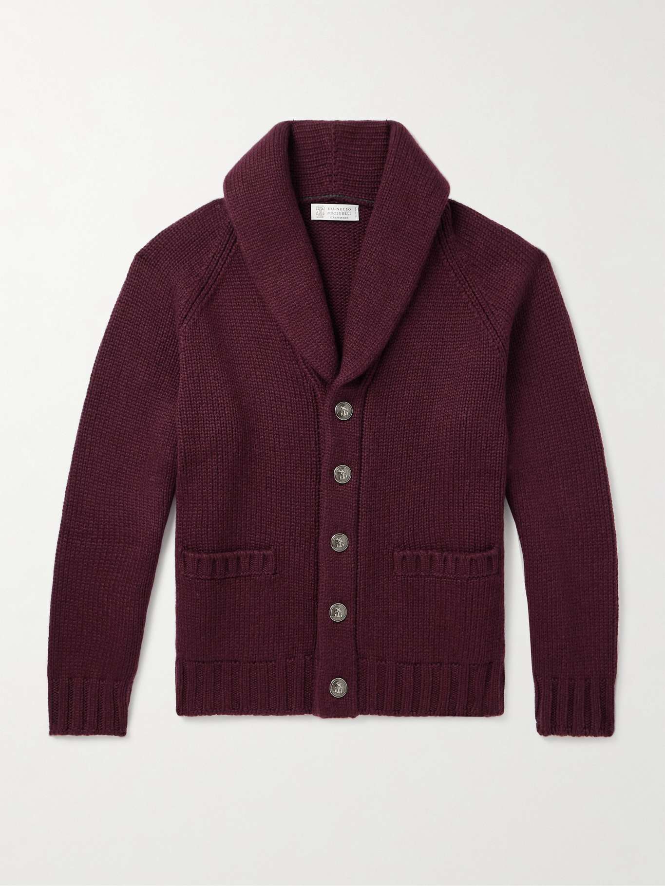 A shawl-collar cardigan makes a great stand-in for a sport coat, especially when the dress code is a little more relaxed. Brunello Cucinelli's is rib-knitted from soft cashmere and has signature 'crest' buttons.