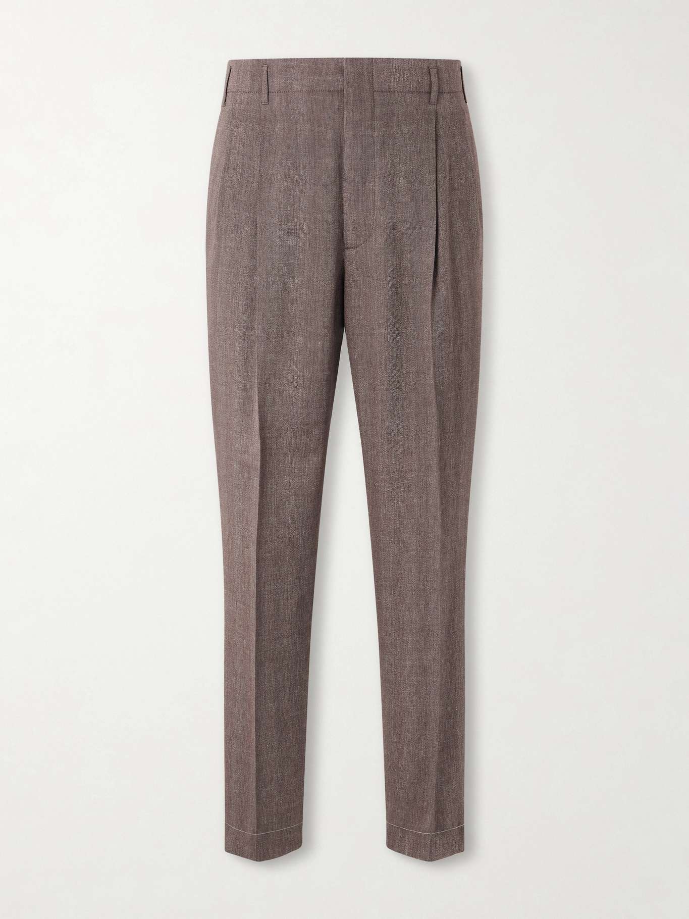 BRUNELLO CUCINELLI Straight-Leg Pleated Linen and Wool-Blend Suit Trousers