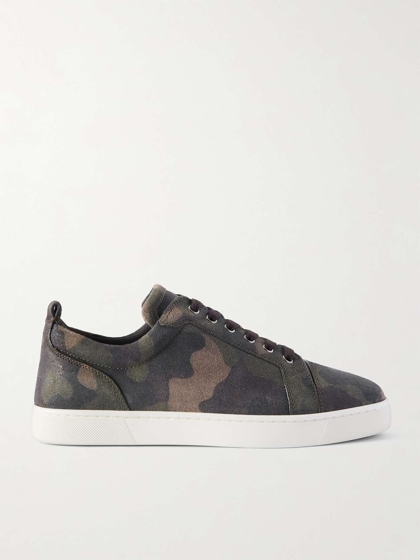 This pair of Christian Louboutin's 'Louis Junior' sneakers is decked out in camouflage print. They’re made from nubuck and have an understated, low-top profile with hallmark red rubber soles debossed with the label's logo.