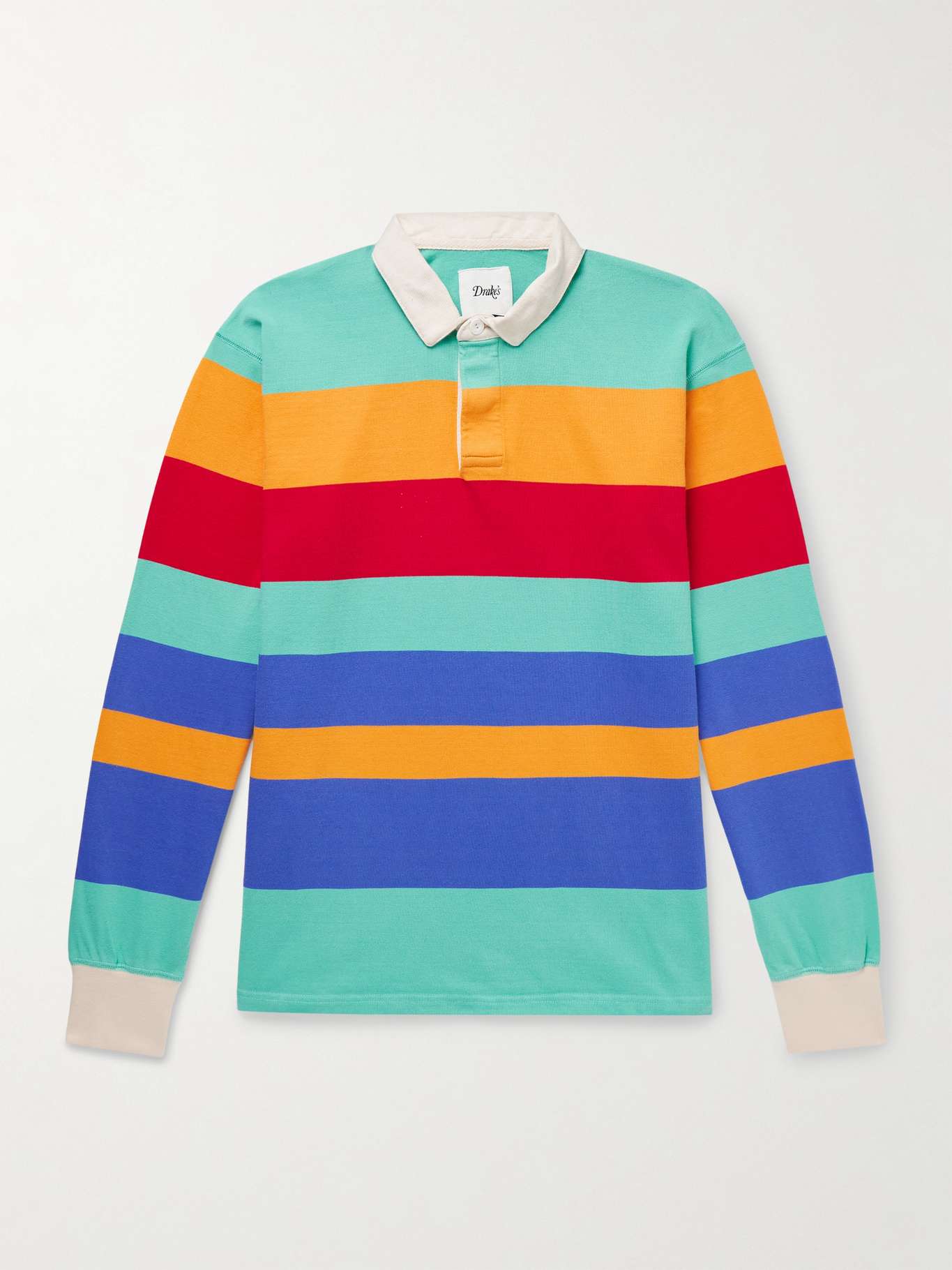 Since its founding almost half a century ago, Drake's has transformed from an under-the-radar British tiemaker to one of menswear's most desirable brands. Modelled on vintage rugby styles, this polo shirt is cut from soft cotton-jersey with a block stripe pattern. Wear it with jeans or under a tailored jacket for a more left-field look.