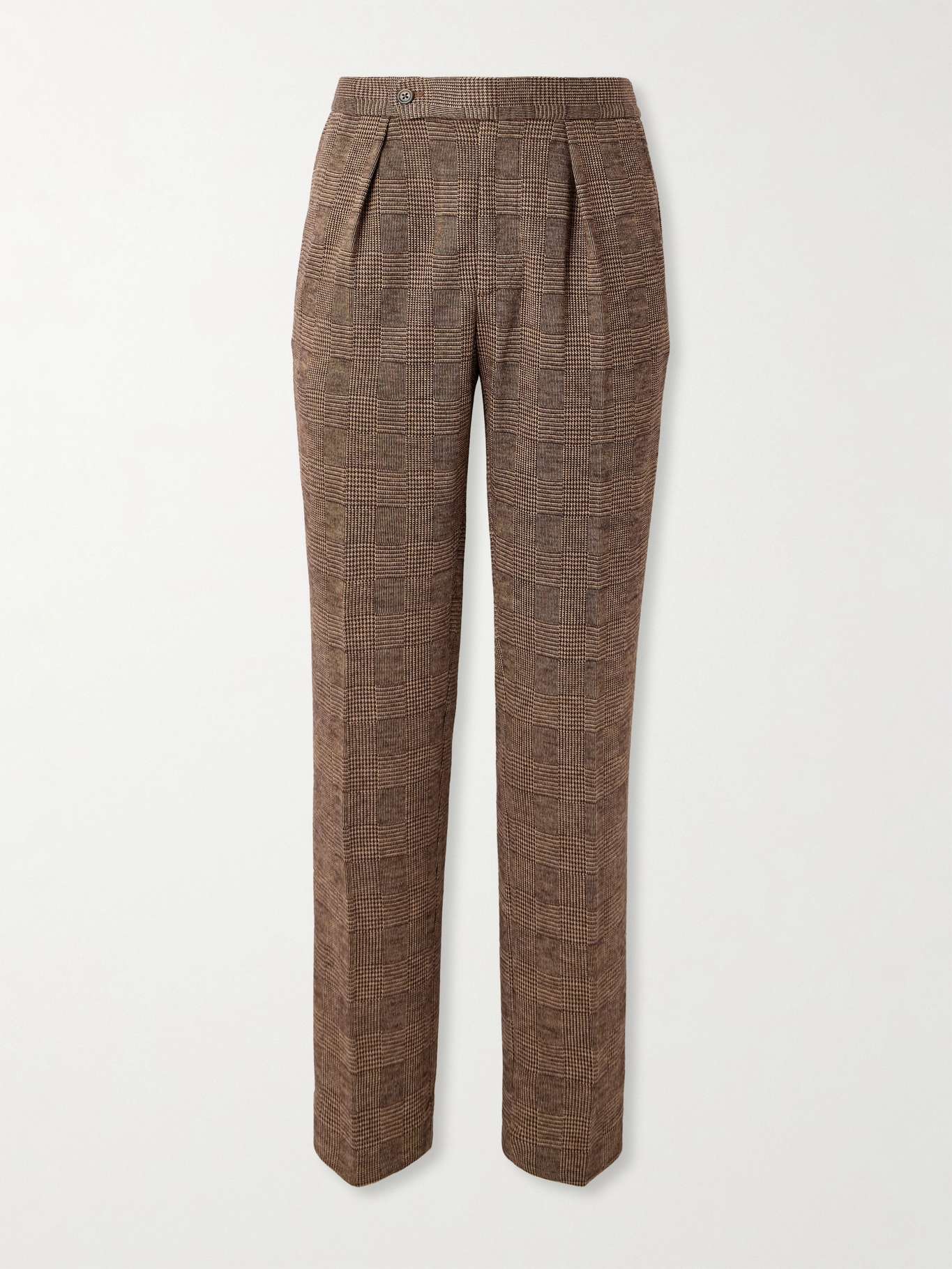 POLO RALPH LAUREN Tapered Pleated Prince of Wales Checked Jersey Trousers