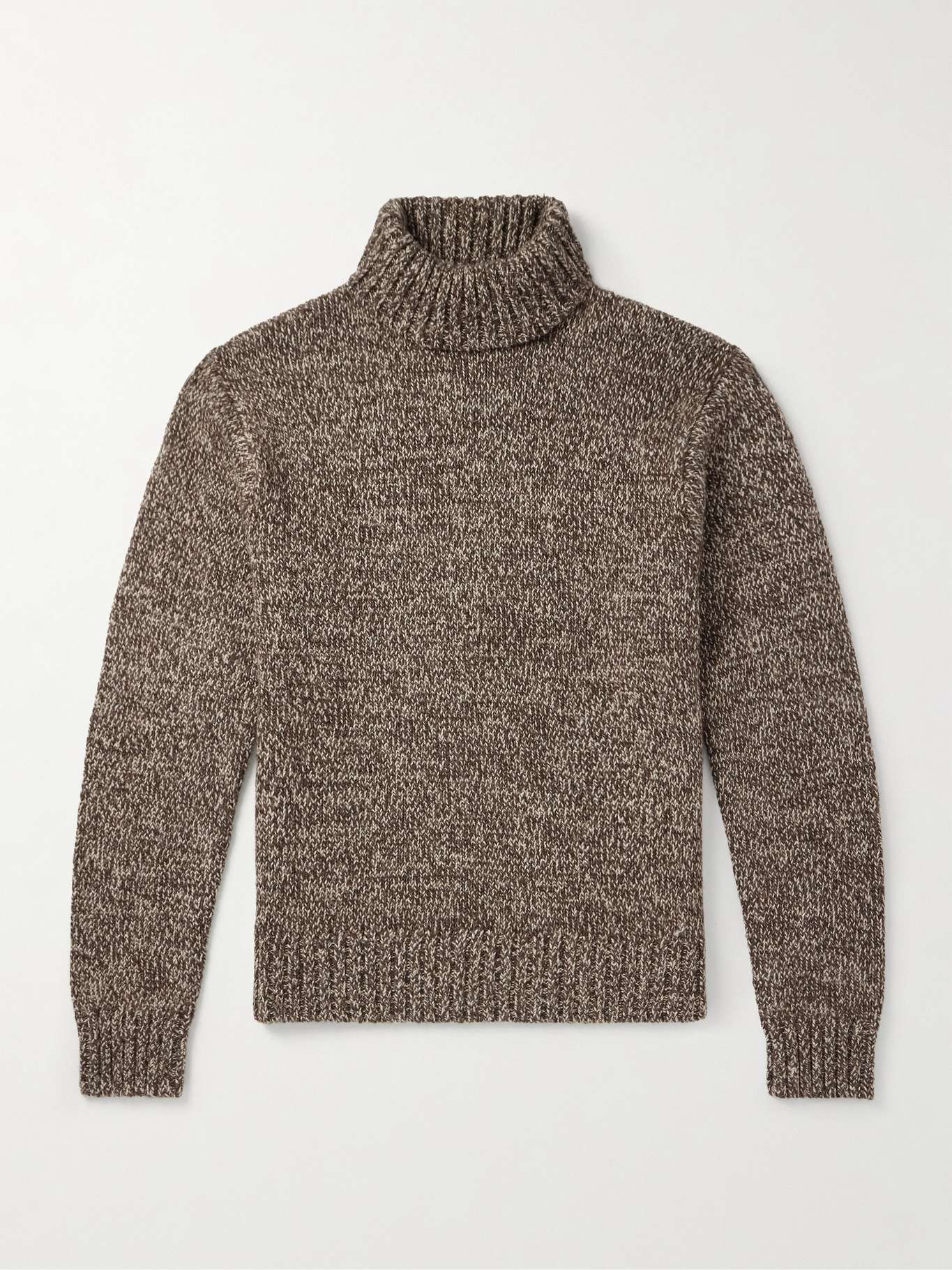- Brown and beige mélange wool, cotton and linen-blend