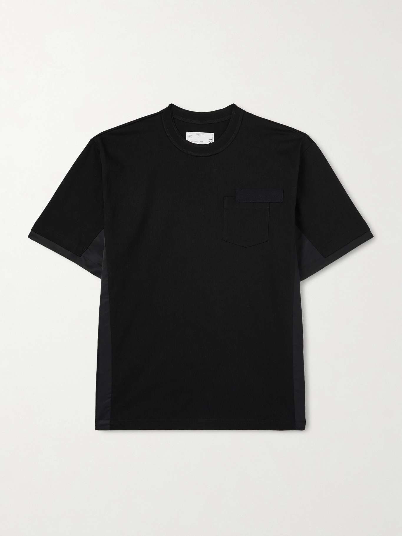 Sacai is a master at artful layering. Made from panels of shell and cotton-jersey, this T-shirt is designed to look like two stacked on top of each other. It's detailed with a front pocket and a twill appliqué above it.