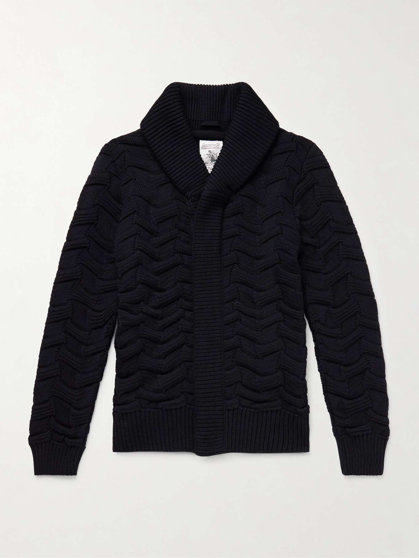 S.N.S. Herning's knitwear is produced using the same methods the brand developed nearly a century ago. This 'Epigon' shawl-collar cardigan is knitted from naturally insulating virgin wool using a thick textured stitch for added heat retention.