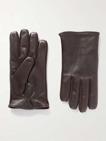 Checked Wool and Cashmere-Blend and Leather Gloves