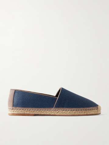Suede-Trimmed Raffia Espadrilles