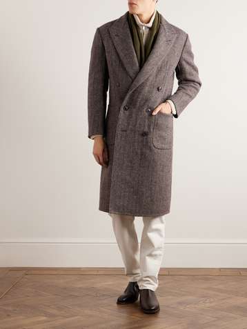 Town and Country Slim-Fit Double-Breasted Herringbone Wool Coat