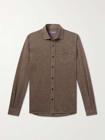 Cut-Away Collar Herringbone Wool and Cotton-Blend Shirt
