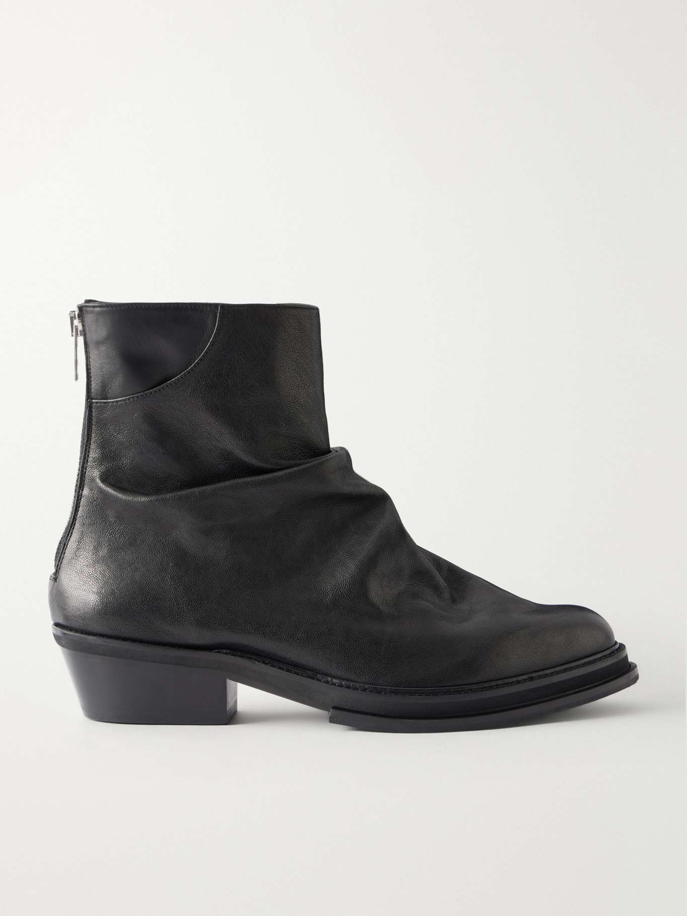 The softly draped leather of 424's ankle boots creates natural folds and will develop a rich patina over time. Made in Italy, they feature a back zip closure and block heels for subtle elevation. Wear them with denim for a modern take on Western-inspired style.