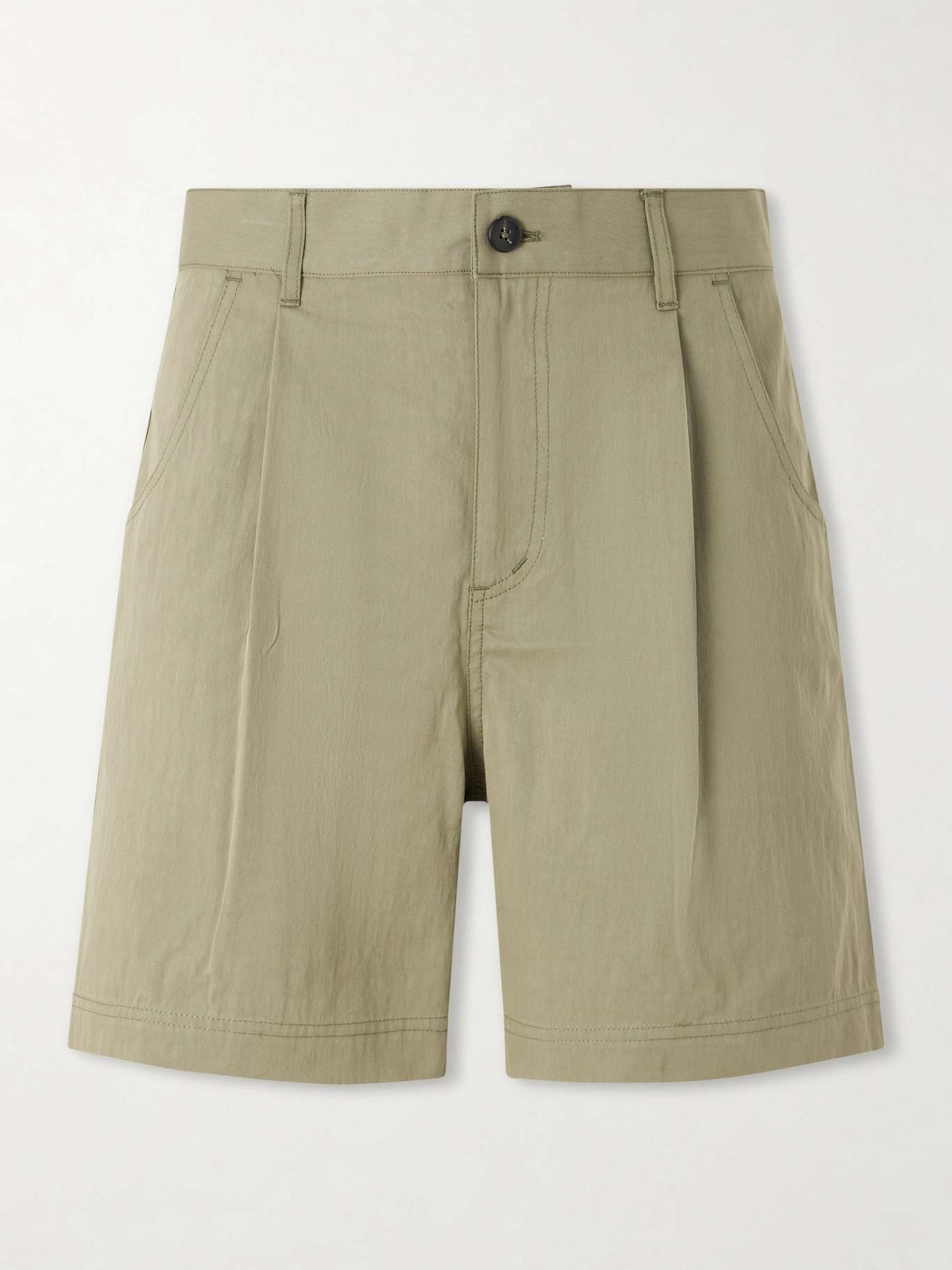 AARON LEVINE Pleated Straight-leg Cotton-Blend Shorts