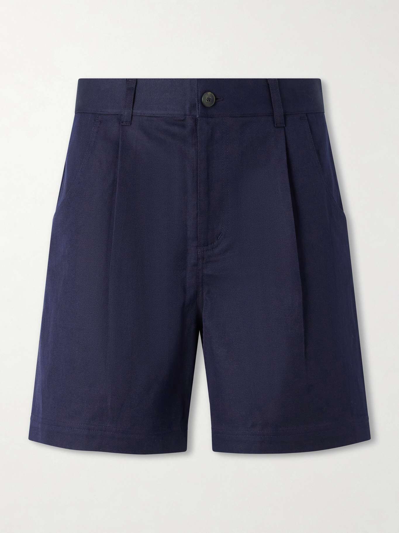 AARON LEVINE Straight-Leg Pleated Cotton and Linen-Blend Shorts
