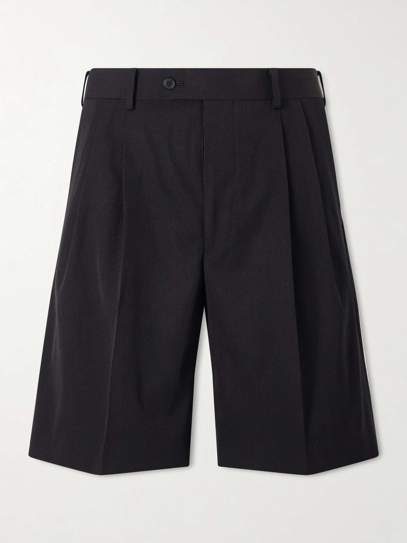 Auralee’s tailored shorts are designed to keep you looking sharp in warmer weather. Cut wide from wool-gabardine, they're detailed with double pleats for more room through the thighs and have neatly pressed creases. Reach for loafers and thread a narrow belt through the waist loops.