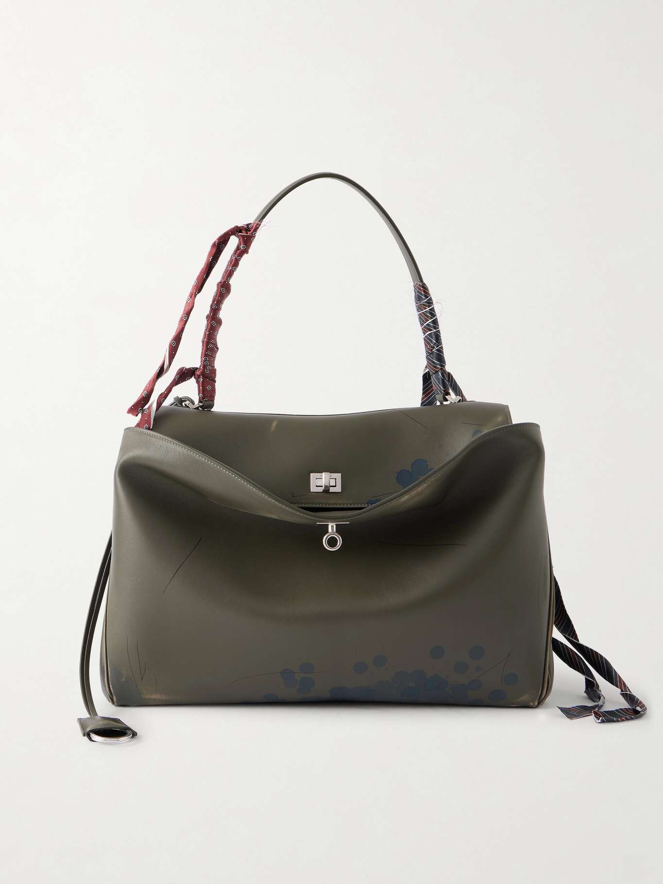 BALENCIAGA Rodeo Large Distressed Satin-Trimmed Printed Leather Tote Bag