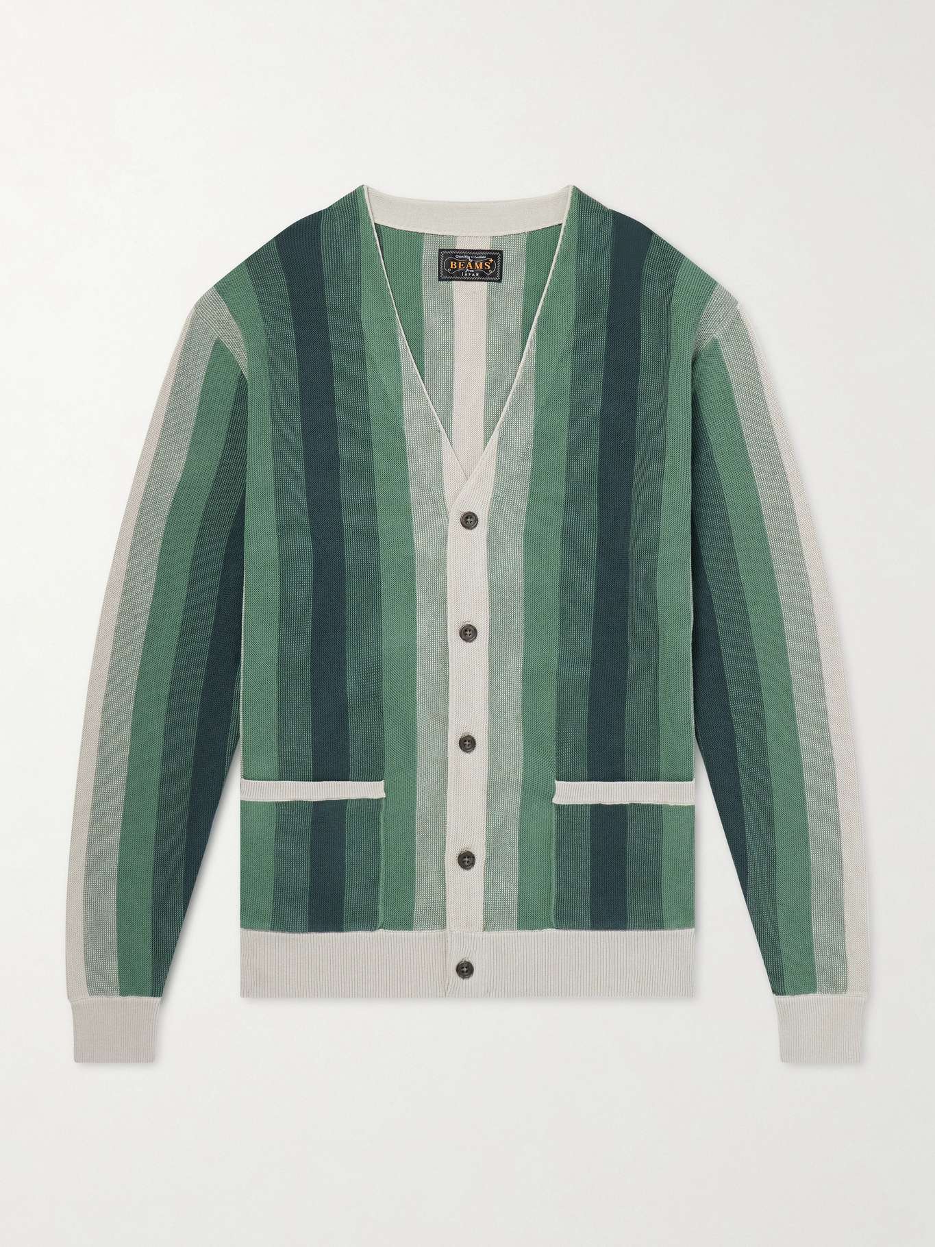 BEAMS PLUS revisits classic knitwear through a vintage-informed lens. This cardigan is made from cotton with a striped design, offering a soft handle and relaxed silhouette that feels easy to wear.