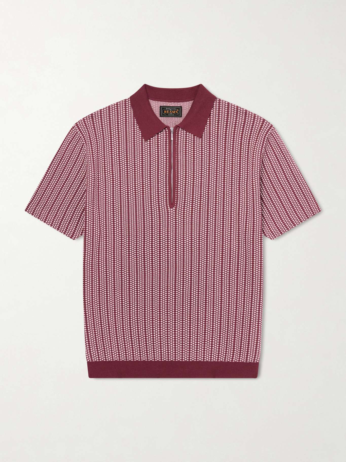 BEAMS PLUS Jacquard-Knit Cotton Half-Zip Polo Shirt