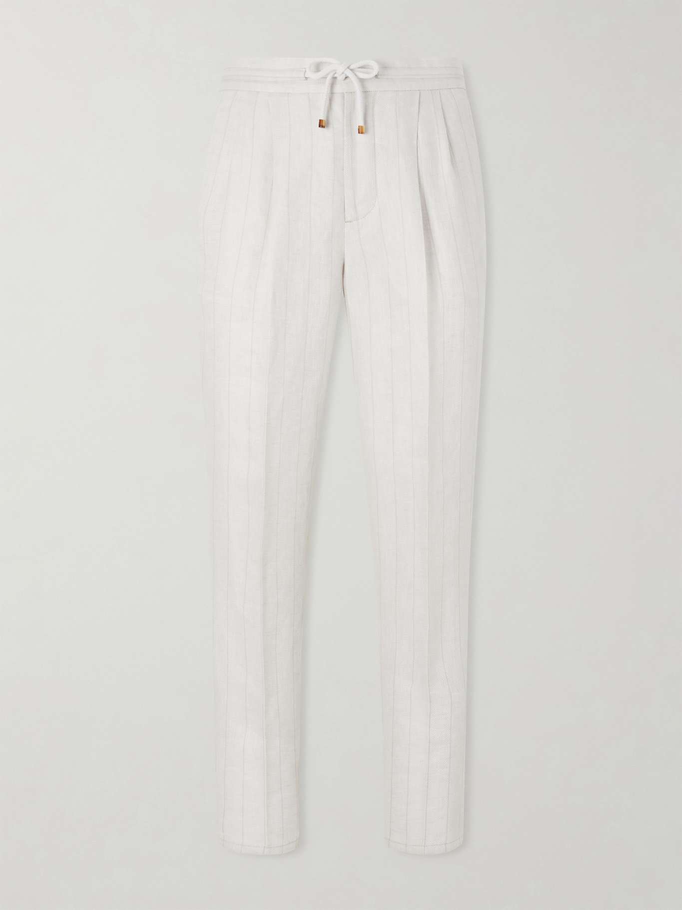 BRUNELLO CUCINELLI Straight-Leg Pinstriped Pleated Linen Trousers