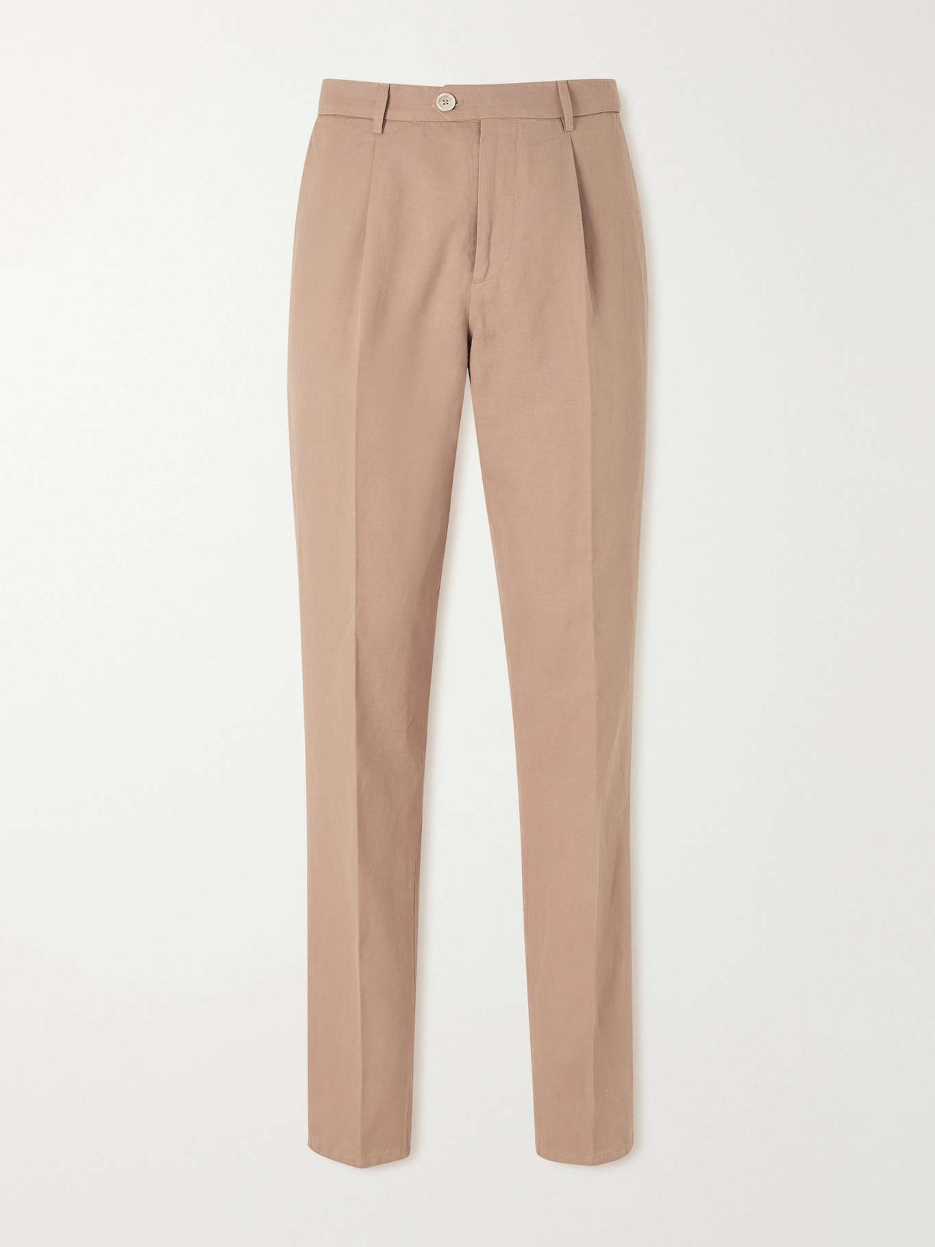 BRUNELLO CUCINELLI Straight-Leg Pleated Cotton and Linen-Blend Trousers