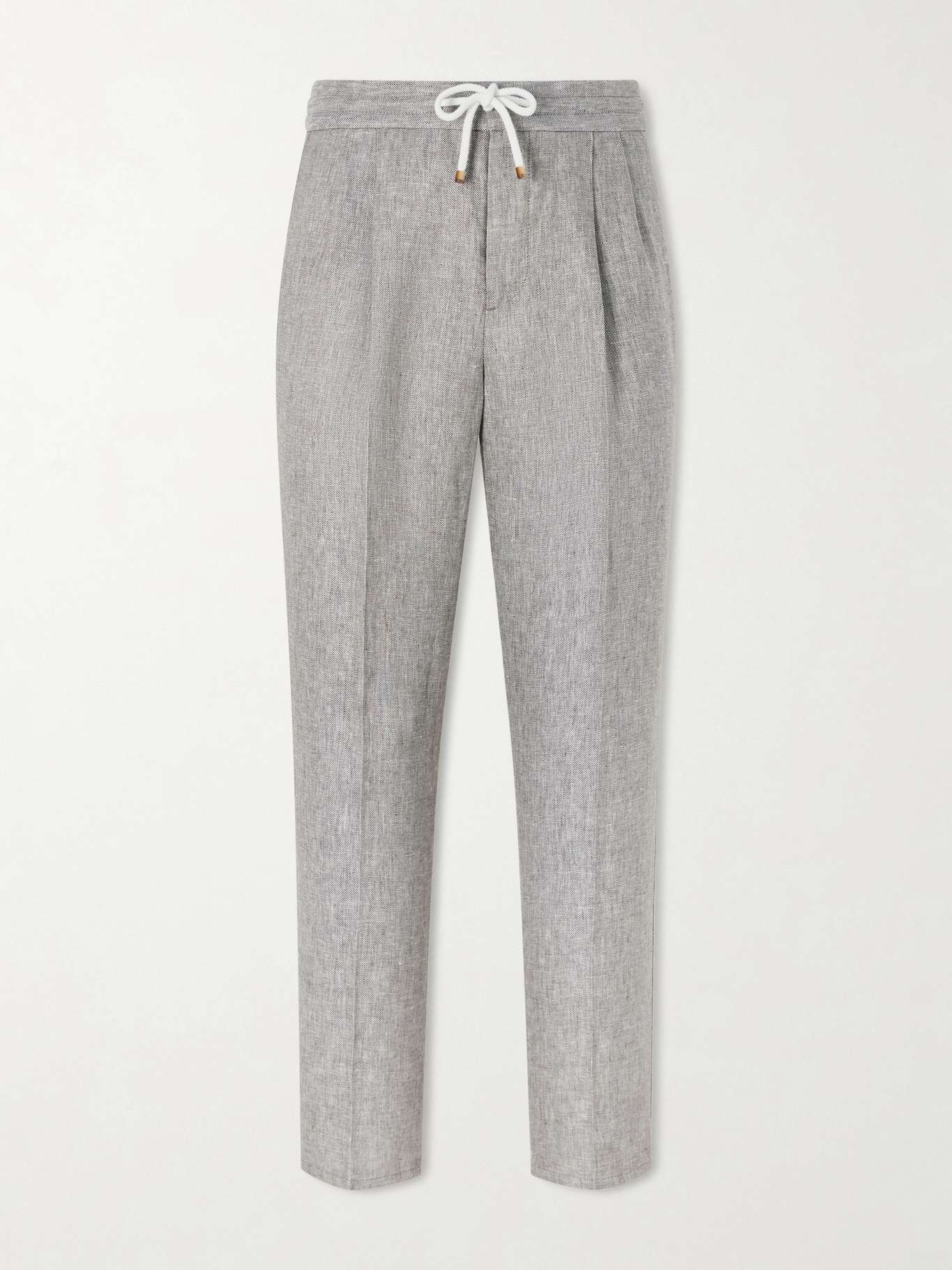 BRUNELLO CUCINELLI Straight-Leg Pleated Hemp and Linen-Blend Twill Trousers