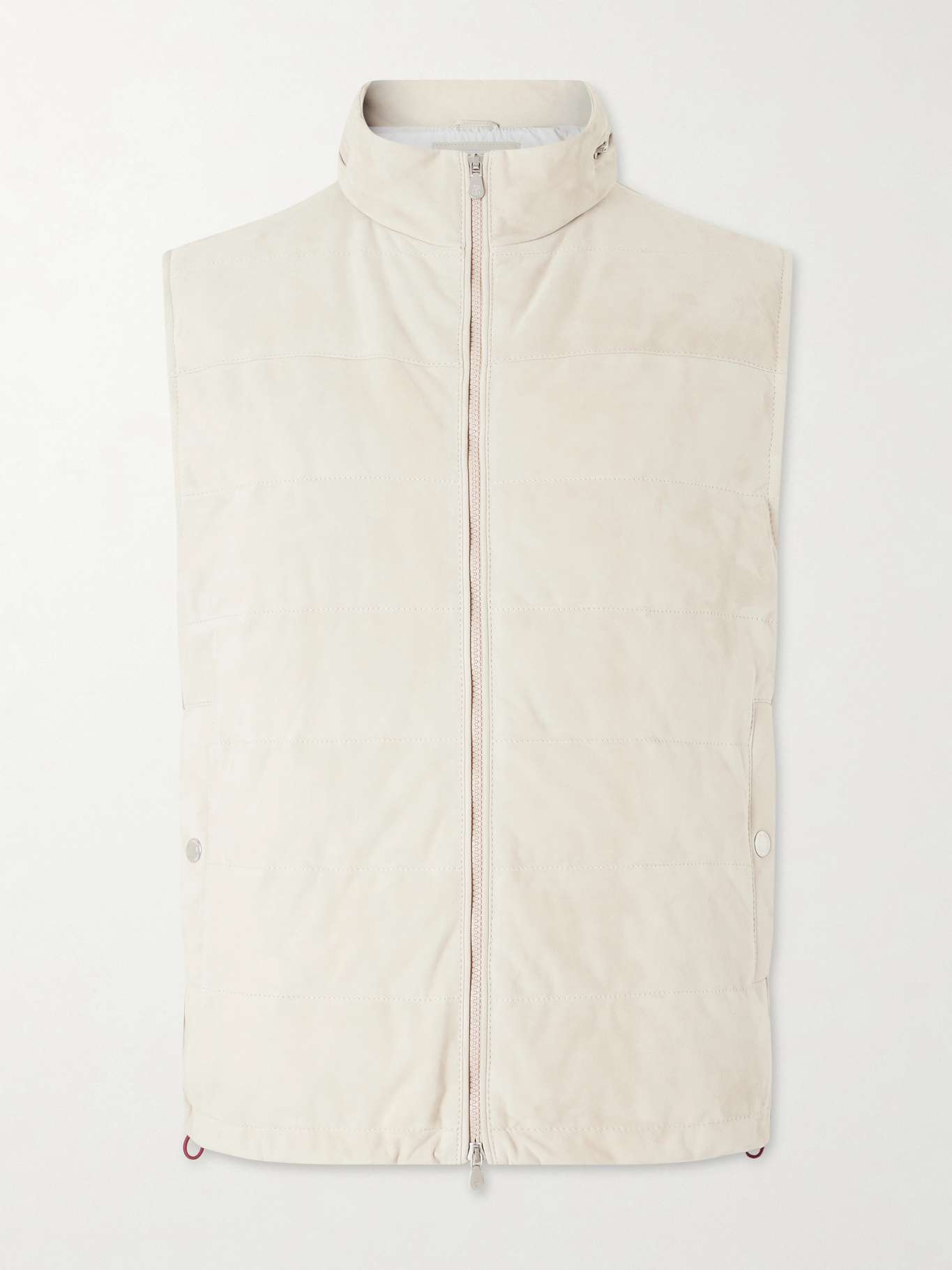 Brunello Cucinelli is renowned for elevating everyday staples through meticulous tailoring and premium materials, as seen in this down gilet. Cut from supple suede in a slim fit, it’s detailed for comfort and versatility with an adjustable drawstring waist, two-way zip closure and an extractable hood.