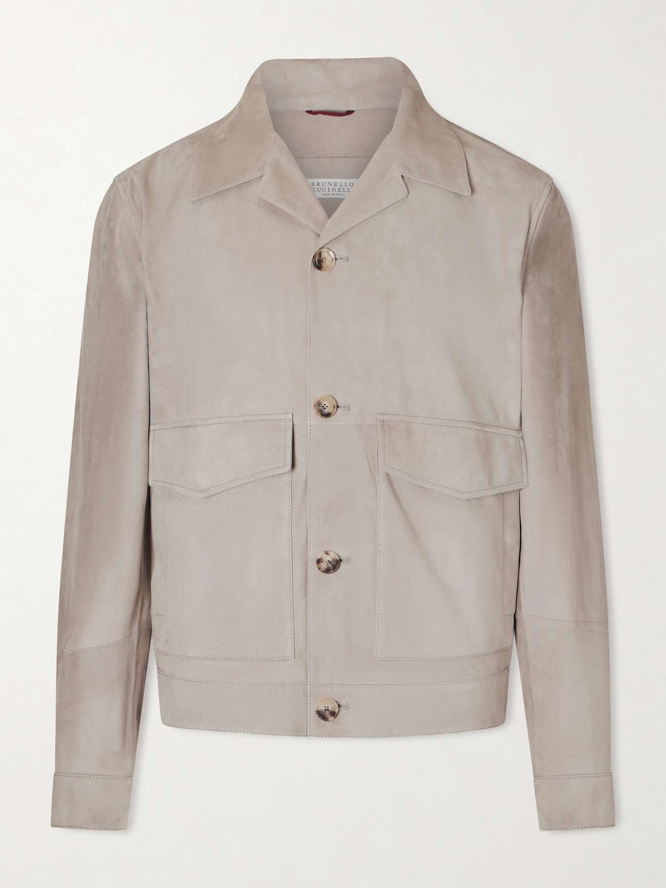 Brunello Cucinelli's blouson jacket takes its cues from military styles, with its wide camp collar and angled flap pockets. It's been made in Italy from pristine suede and cut for a neat fit.