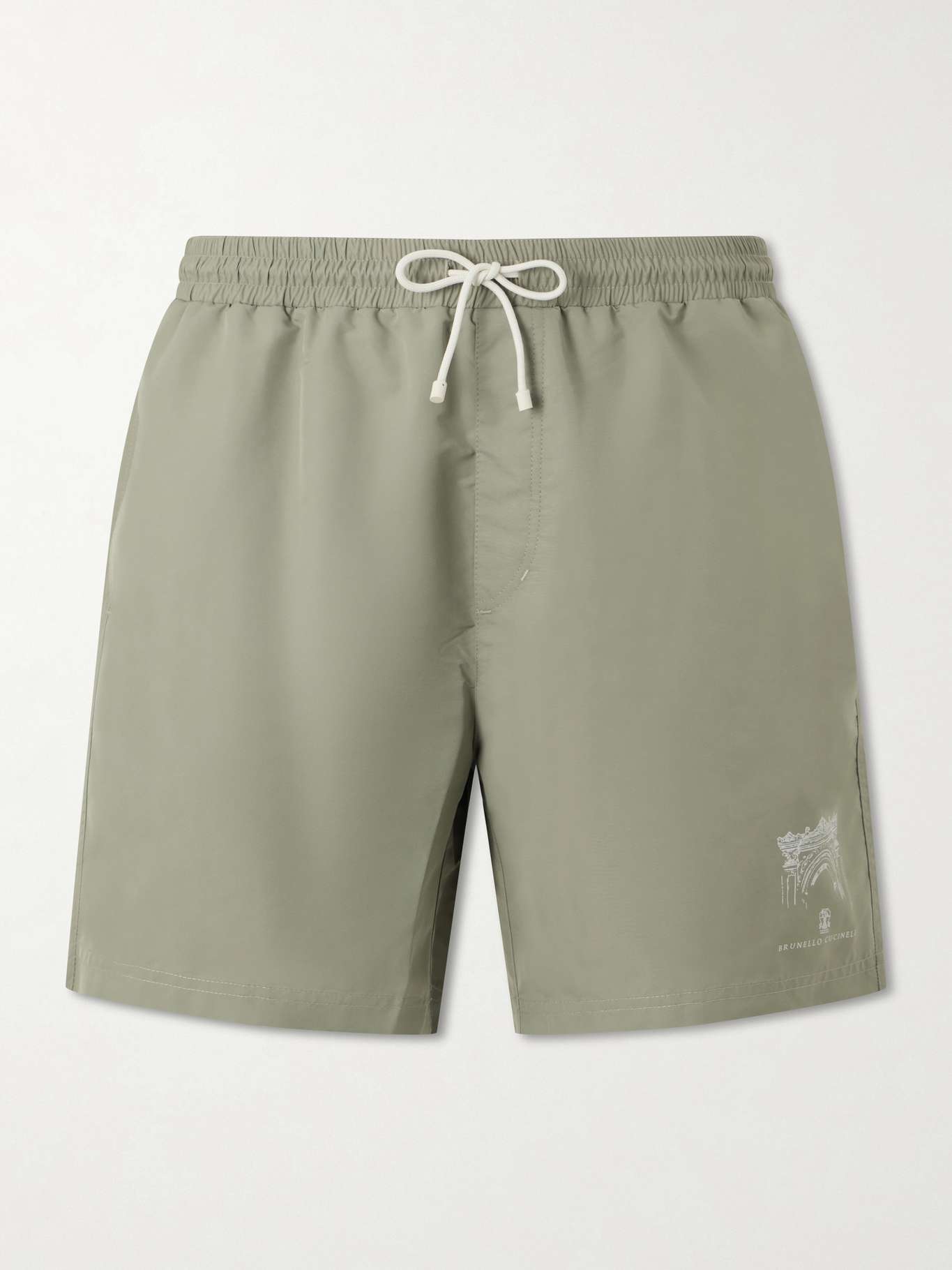 BRUNELLO CUCINELLI Straight-Leg Mid-Length Logo-Print Swim Shorts