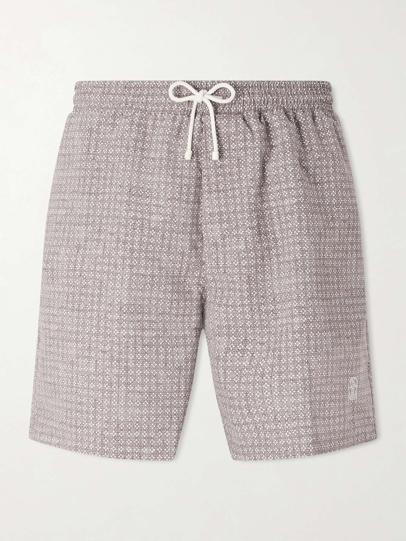 BRUNELLO CUCINELLI Straight-Leg Mid-Length Logo-Embroidered Printed Swim Shorts