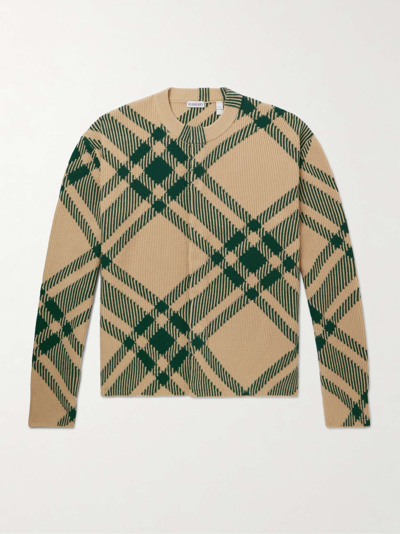 BURBERRY Checked Ribbed Wool-Blend Cardigan