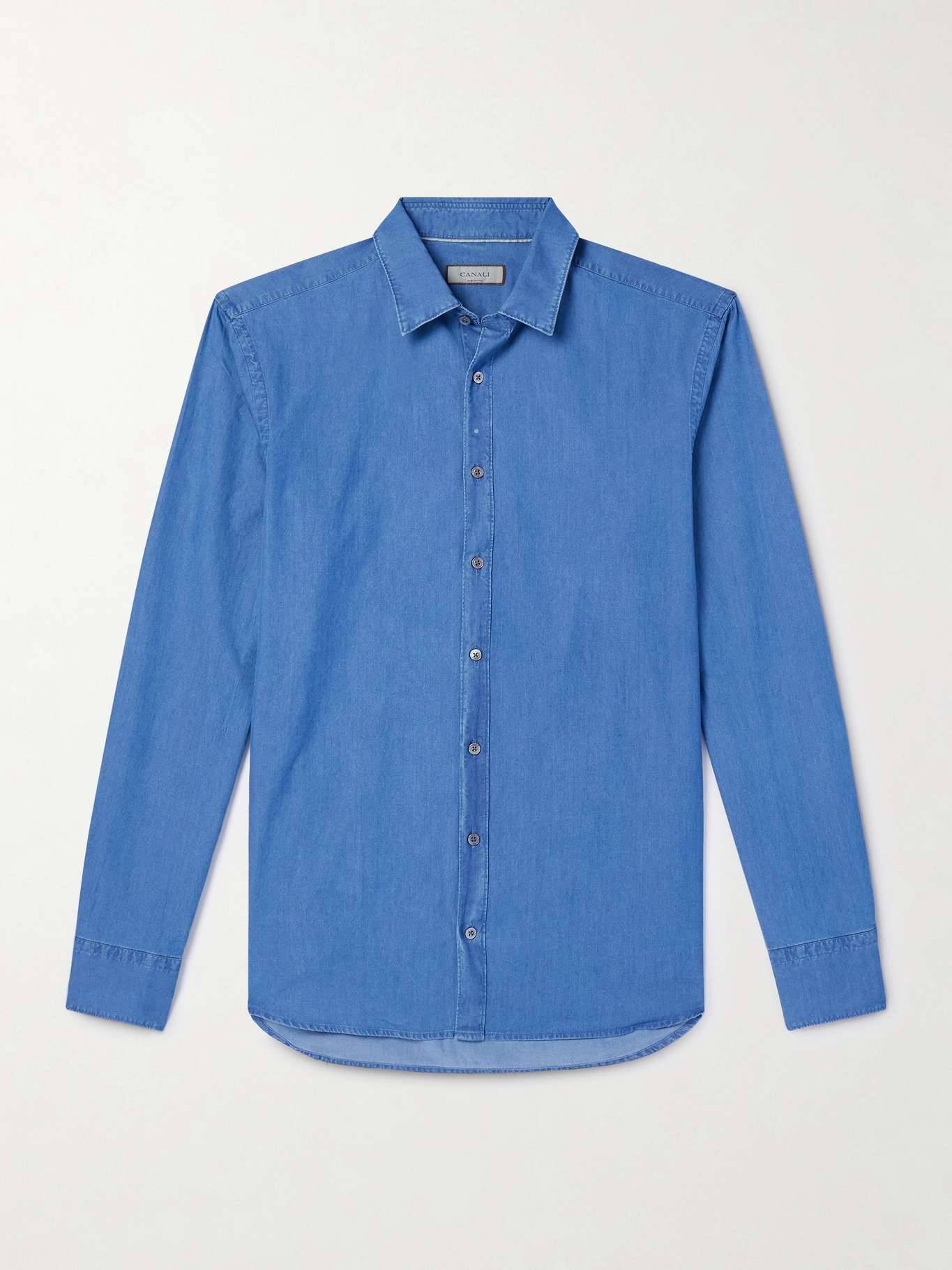 Canali elevates an everyday staple with its signature Italian refinement. Cut from lightweight cotton chambray, this shirt has a clean, streamlined silhouette that feels easy rather than casual. Pair it with tailored trousers or dark denim.