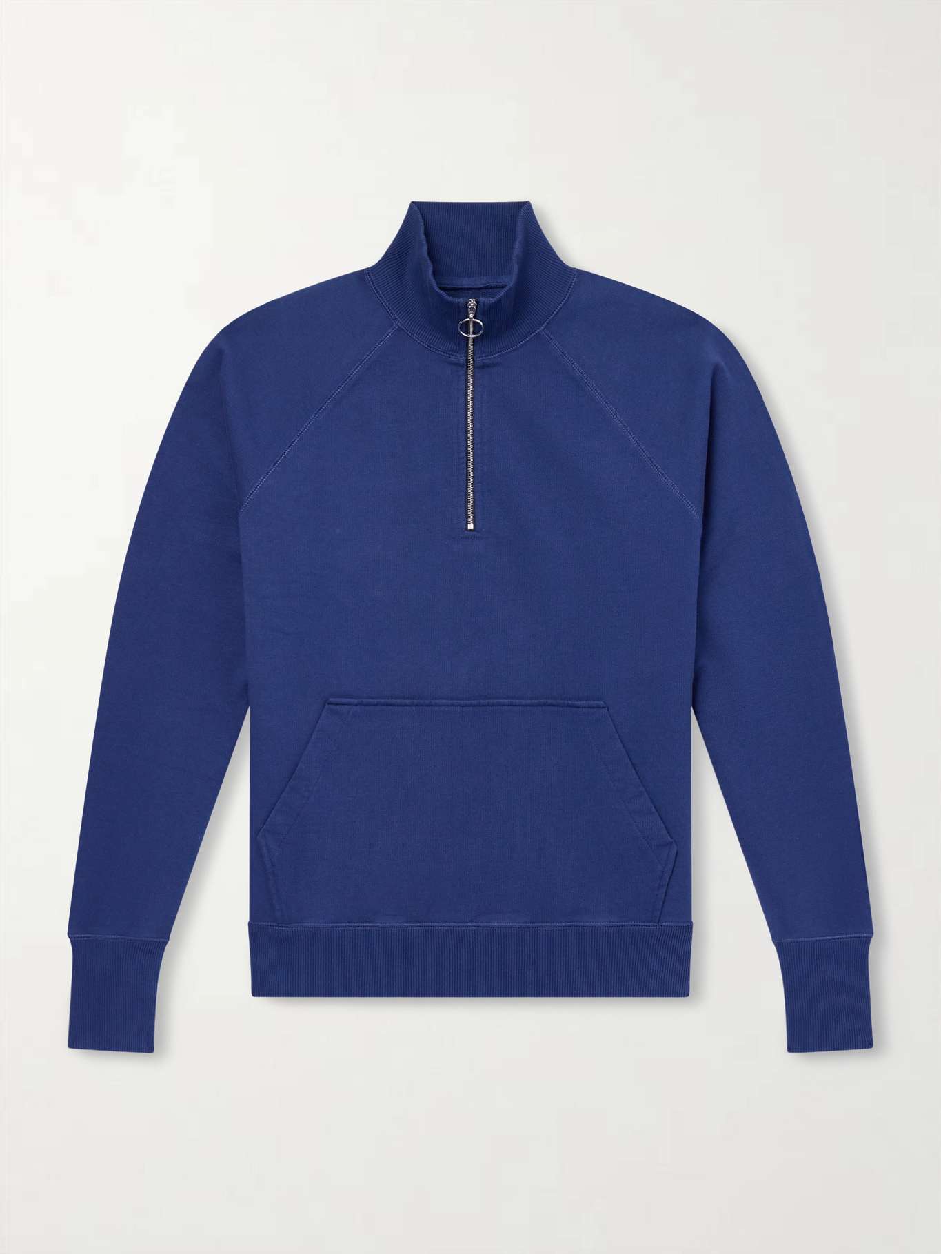 DRAKE'S Cotton-Jersey Half-Zip Sweater