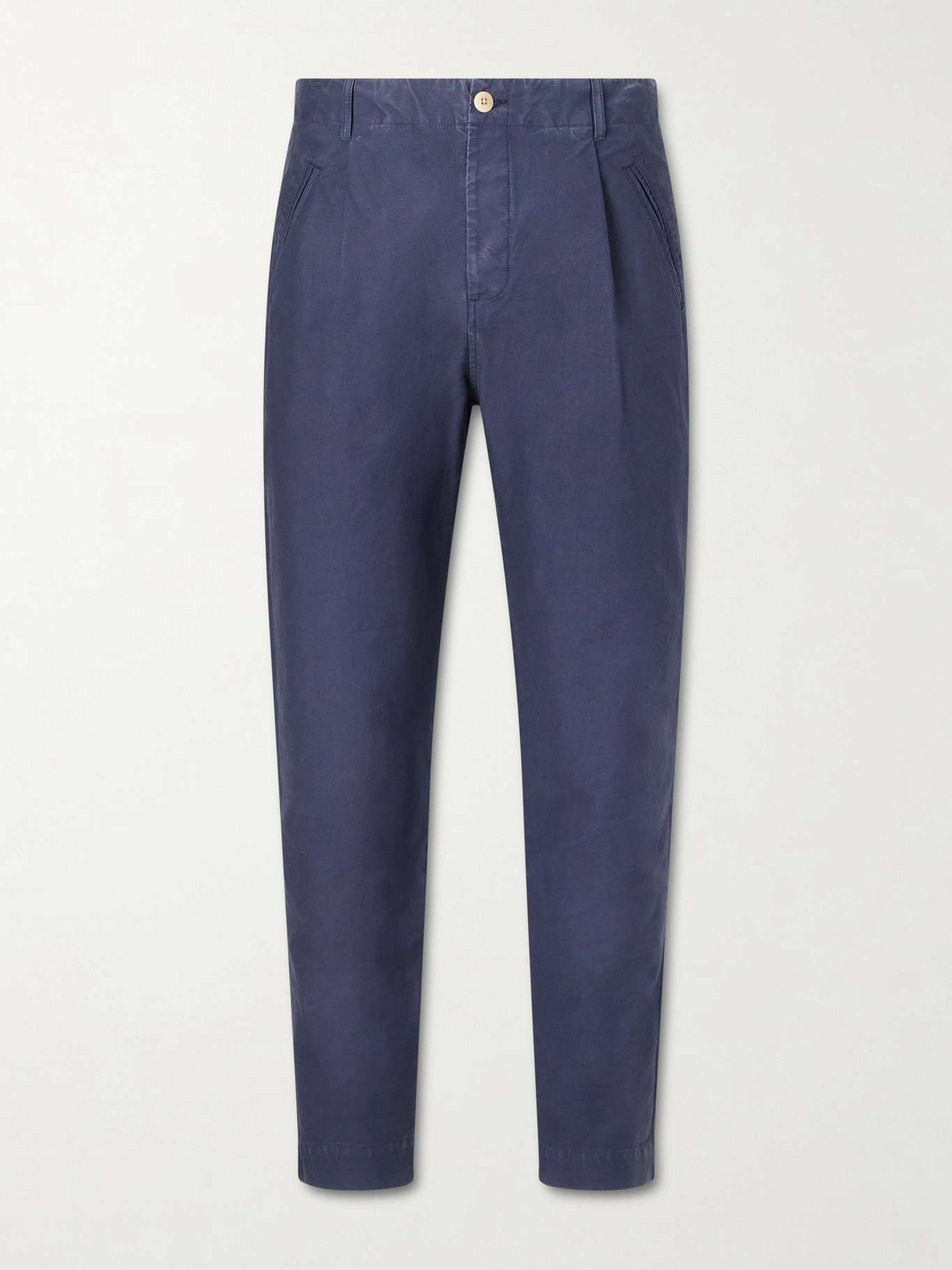 FOLK Assembly Slim-Fit Pleated Cotton-Twill Trousers