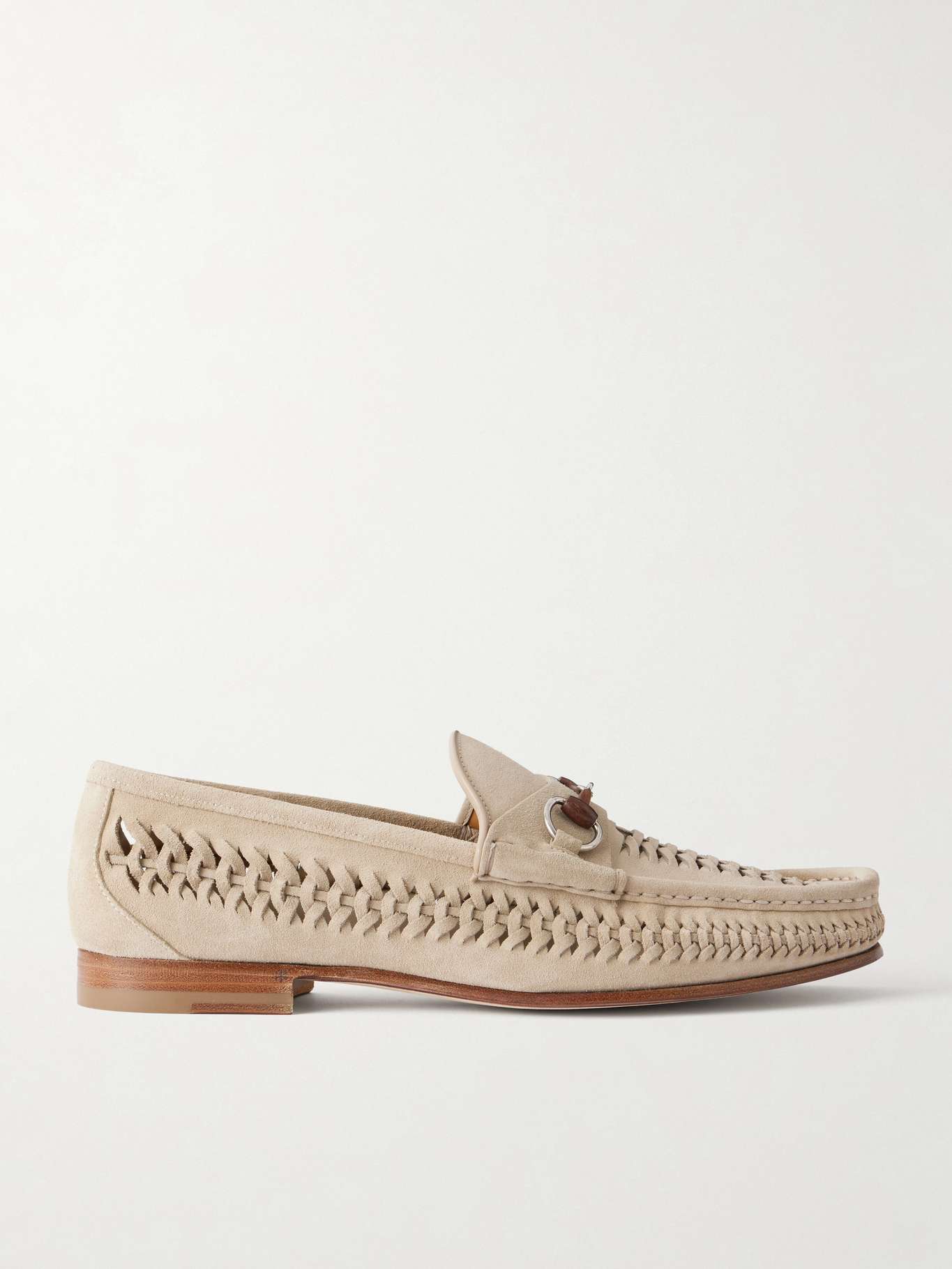 GUCCI Horsebit-Embellished Woven Suede Loafers