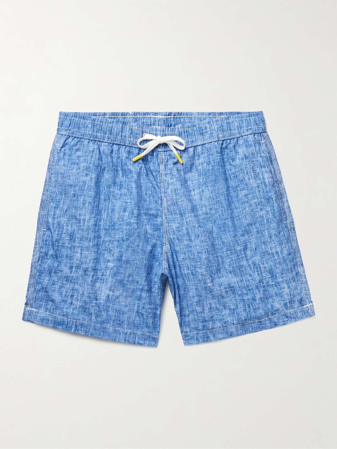 Hartford's swim shorts are cut from blue shell that resembles chambray from afar, making them just as suited for post-beach lunch plans. Designed in a mid-length, they're lined in mesh and have a comfortable drawstring waistband.