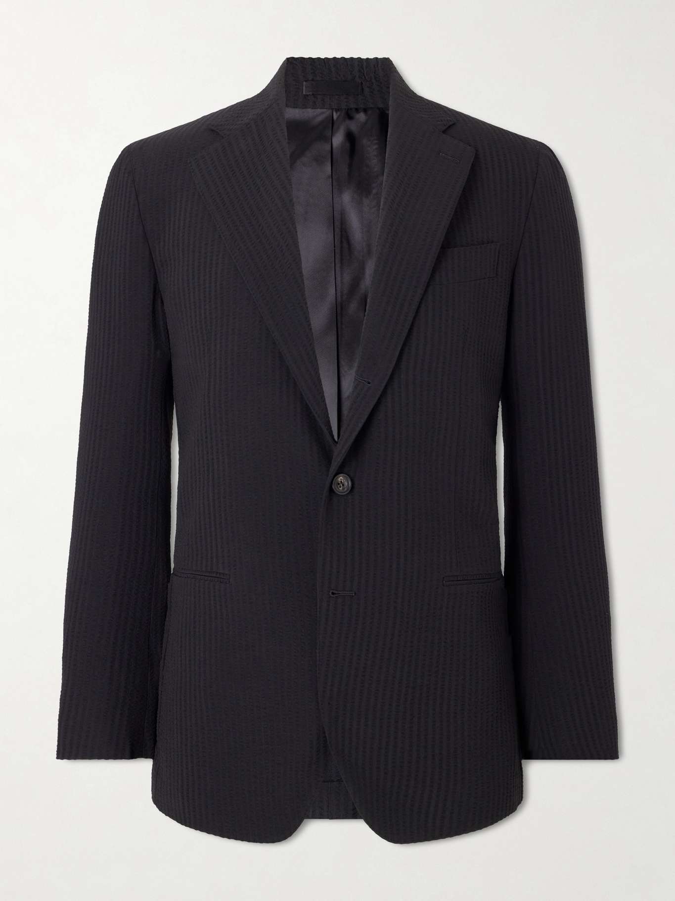J. Mueser reinterprets classic menswear through thoughtful cuts and understated, modern proportions. This single-breasted blazer is tailored from seersucker virgin wool in a regular fit and partially lined, with notch lapels and jetted pockets. While suited to formal settings, it also pairs effortlessly with cargo trousers and espadrilles for relaxed, everyday wear.