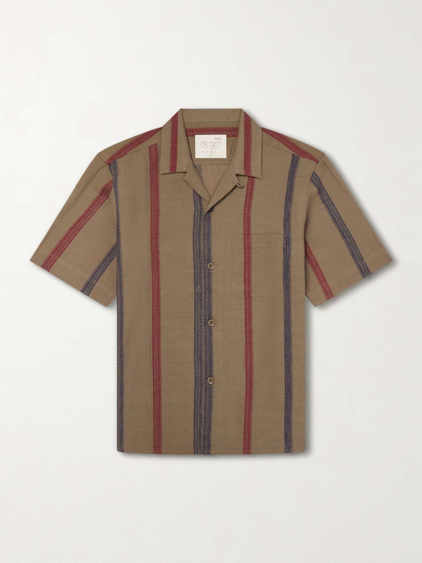 KARDO Ronen Camp-Collar Striped Jacquard-Knit Cotton Shirt
