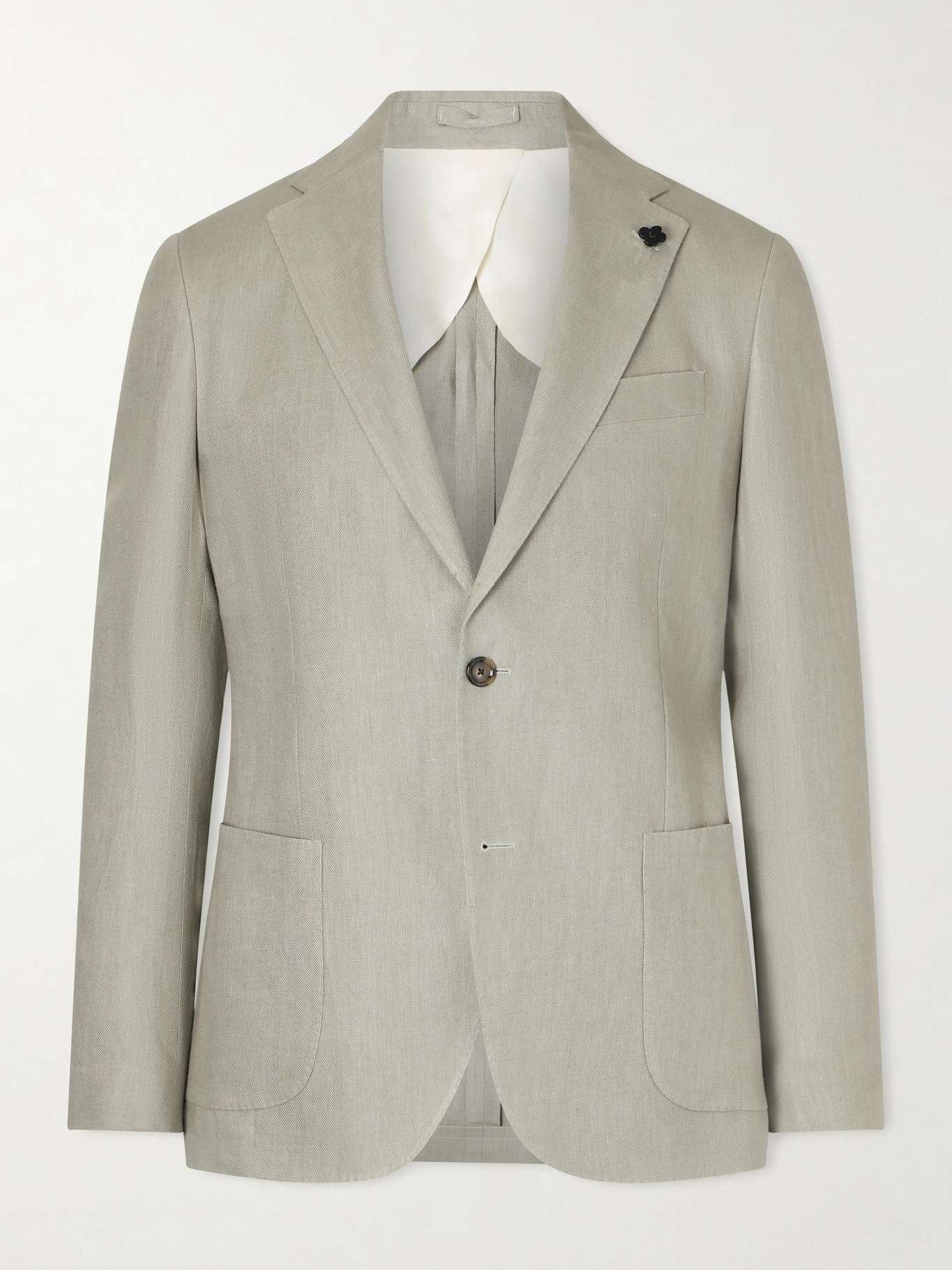 Coloured a fresh sage-green, Lardini's blazer is tailored with an unstructured shape that feels really relaxed. It's been made from breathable linen with a partial lining and has a signature flower pin at the lapel.