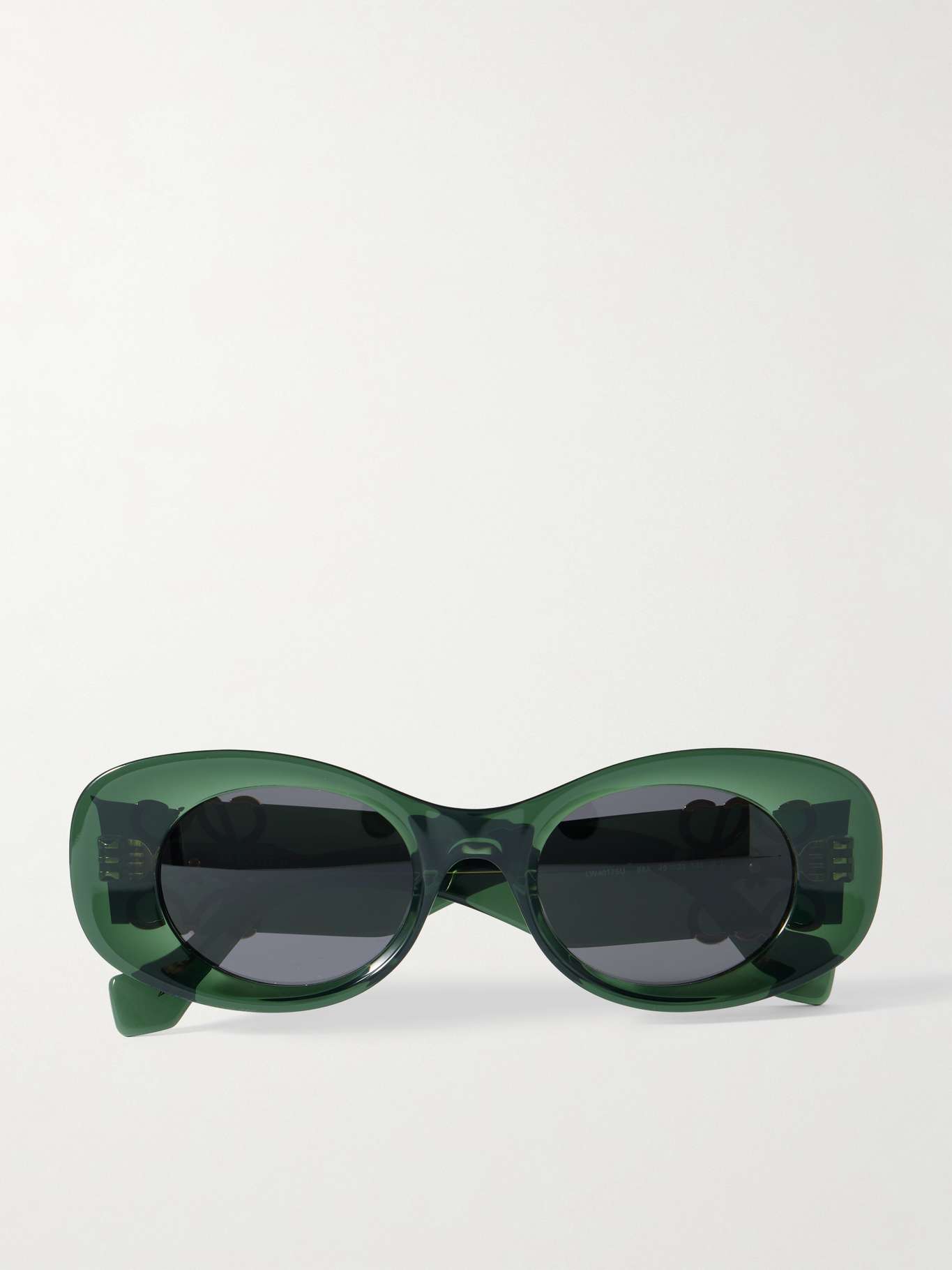Loewe Eyewear's sunglasses have bold, oval-shaped frames and oversized 'Anagram' emblems at the temples. They've been made in Italy from translucent acetate and are fitted with dark-grey lenses.