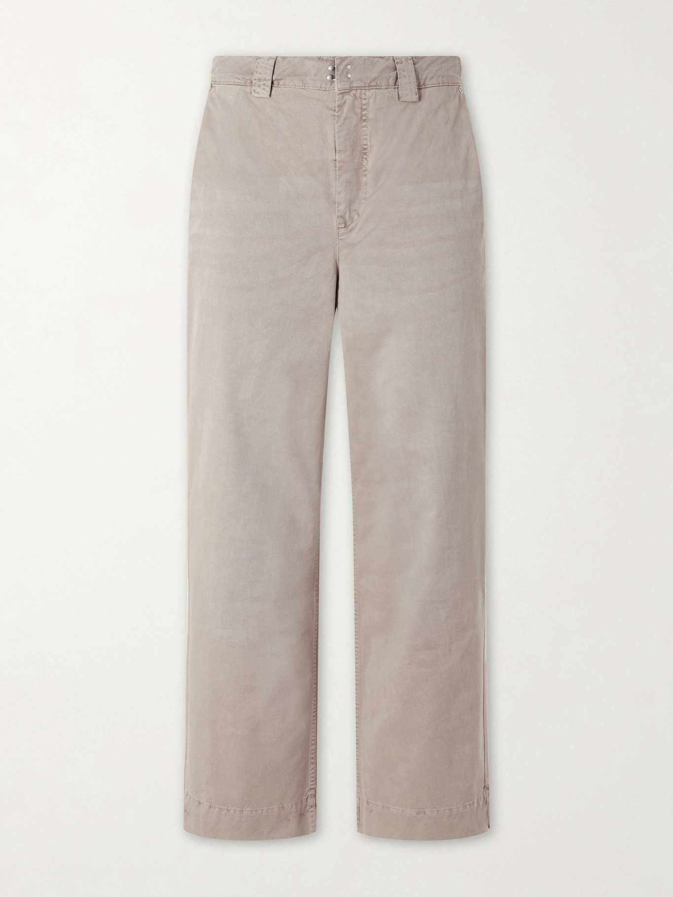 mpfen’s ‘Comission’ trousers are designed to showcase a worn-in vintage effect, with a tan shade and raw edges. Made from cotton twill, they have a relaxed straight-leg fit and feature side and back slot pockets for functional, effortless style.