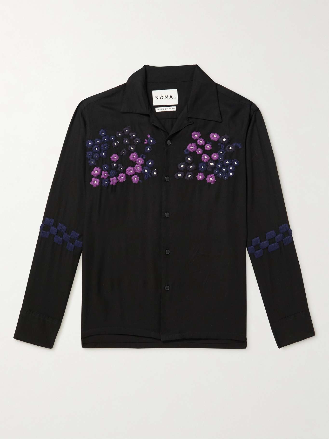 NOMA T.D. Convertible-Collar Embroidered Satin Shirt