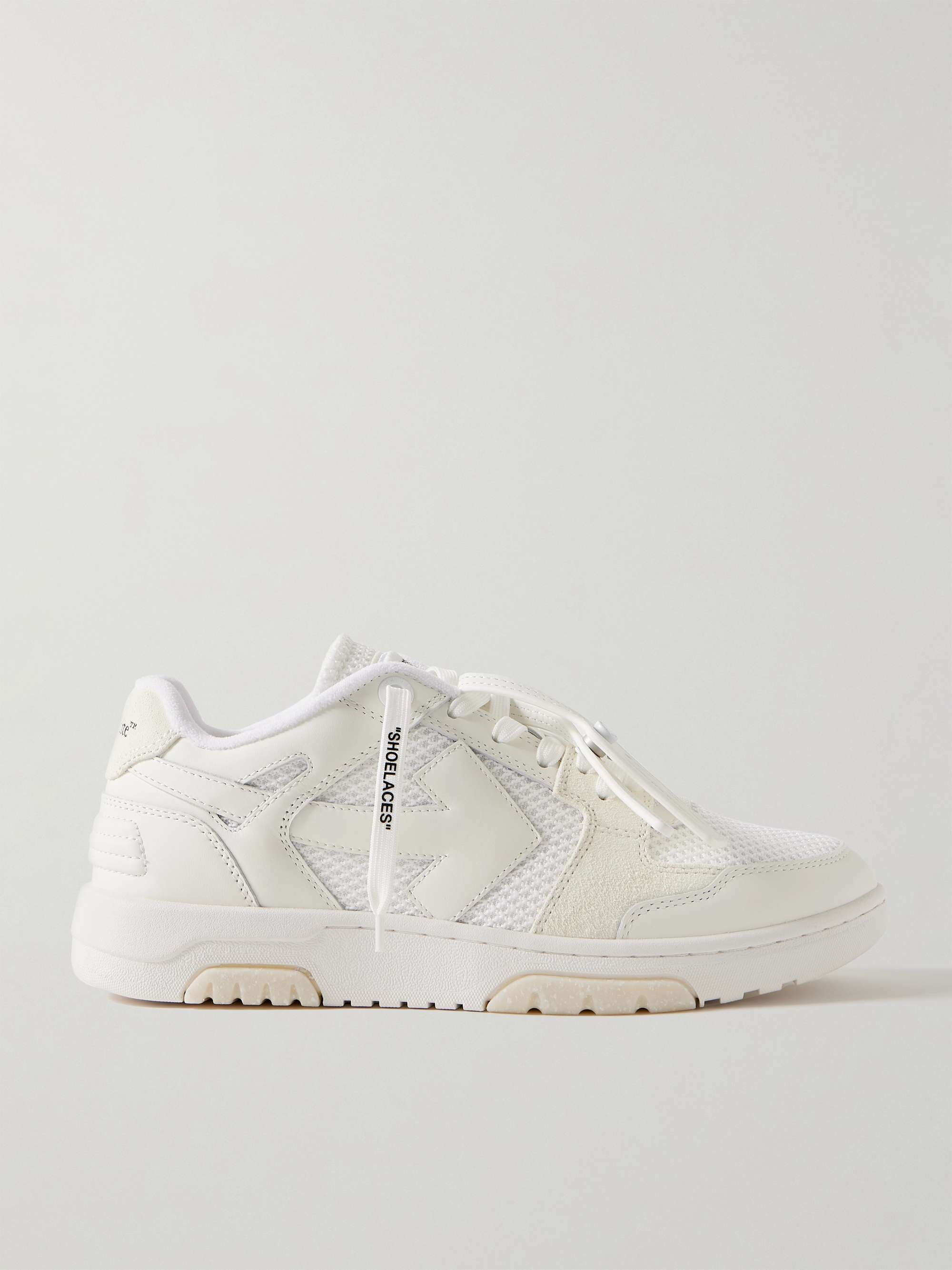 OFF-WHITE Out of Office Suede-Trimmed Leather and Mesh Sneakers