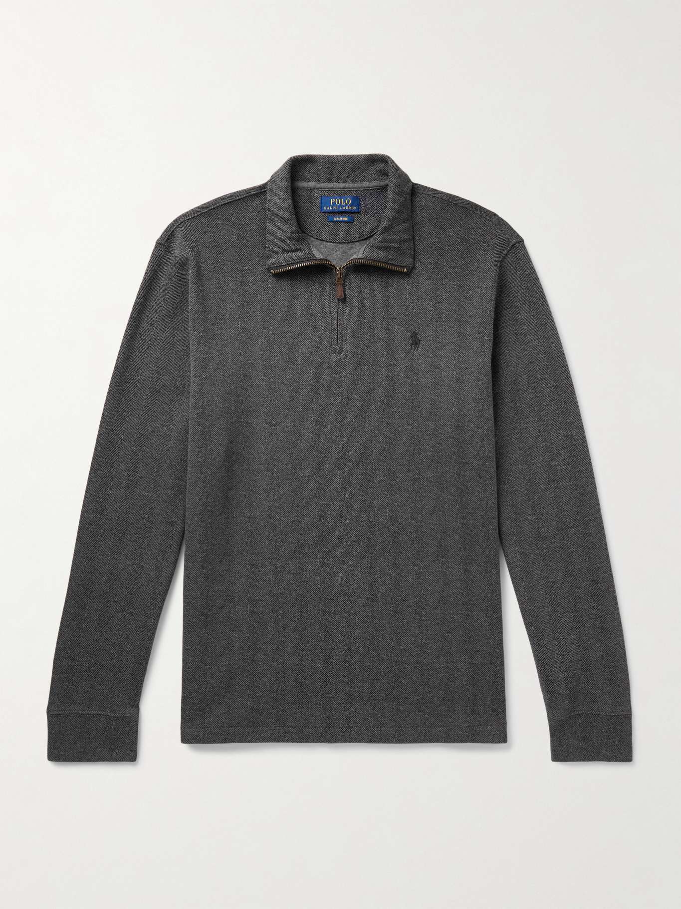 POLO RALPH LAUREN Logo-Embroidered Herringbone Cotton Half-Zip Sweatshirt