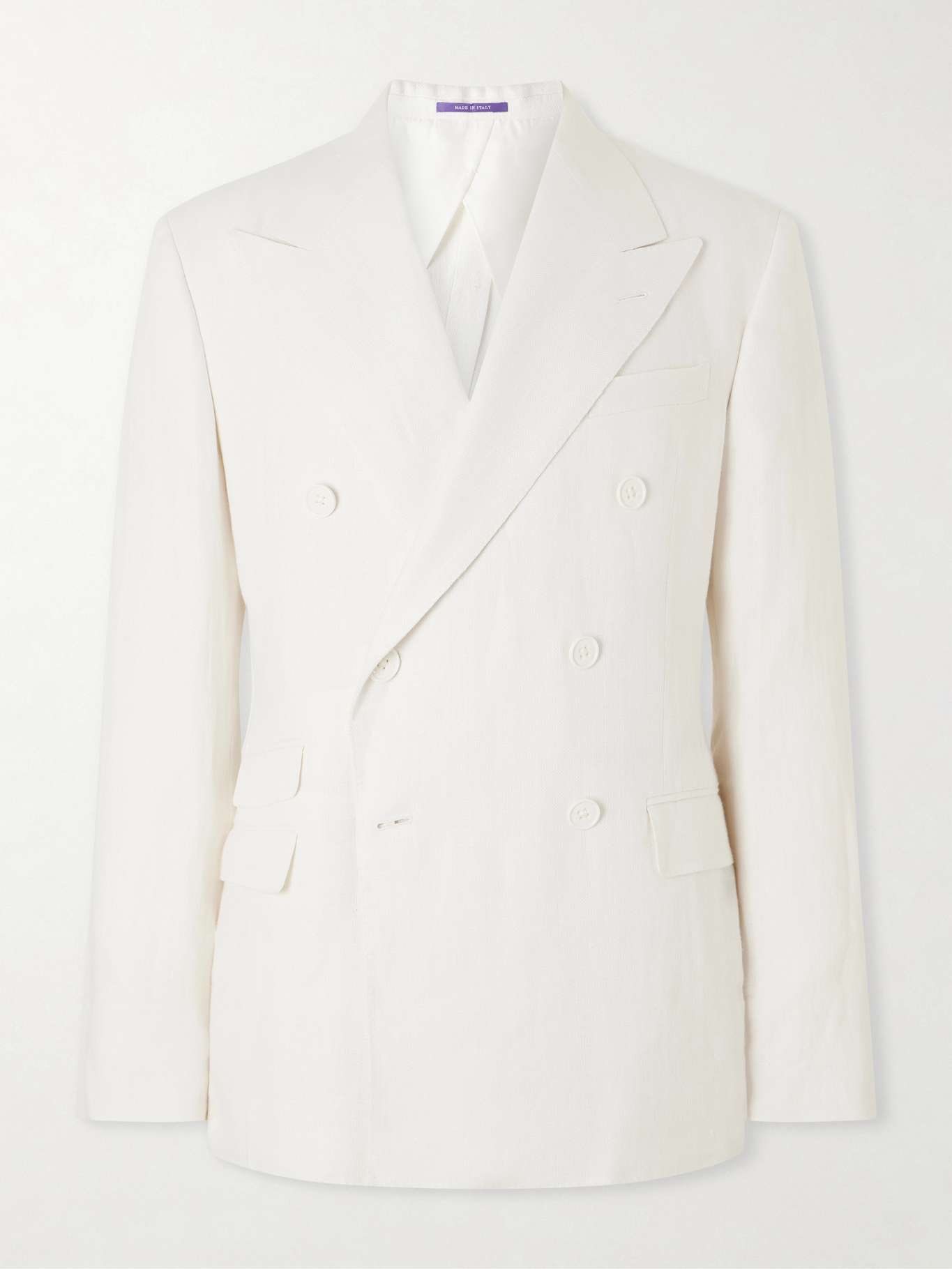 RALPH LAUREN PURPLE LABEL Double-Breasted Herringbone Linen Suit Jacket