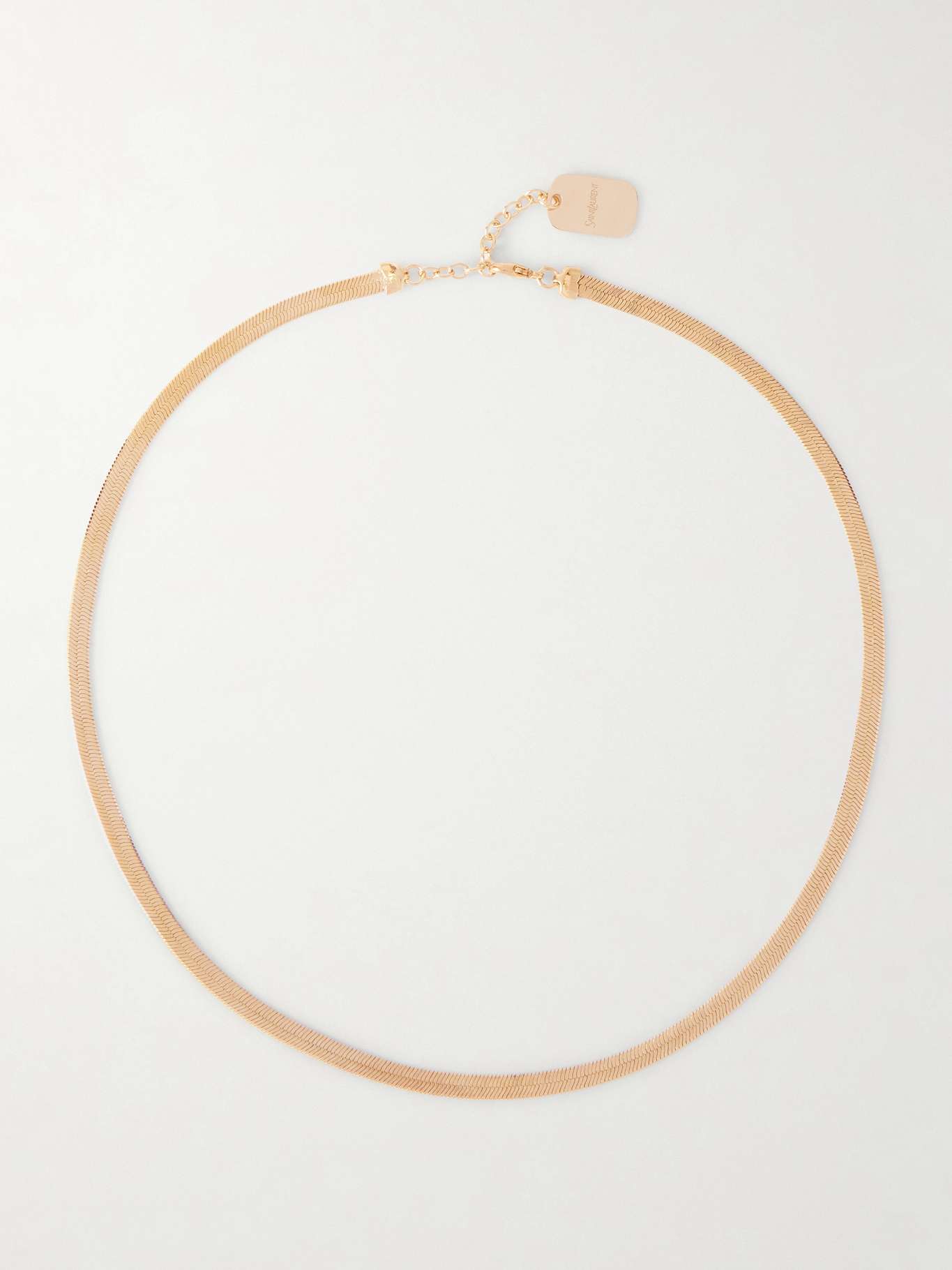 SAINT LAURENT's gold-tone necklace has a minimal design and works as a stacker or solo. It's made in a herringbone pattern from fine links, a point of difference from the chains in your collection.