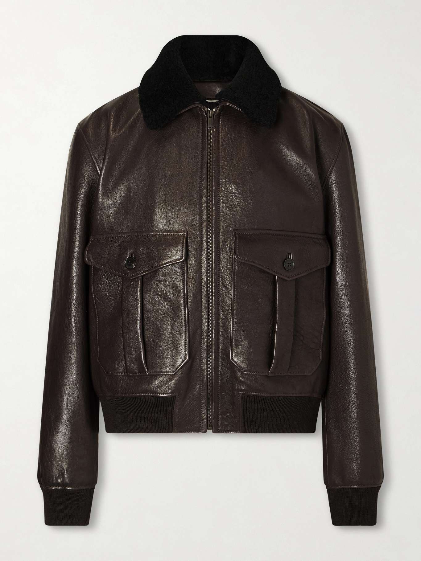 SAINT LAURENT Shearling-Trimmed Full-Grain Leather Jacket