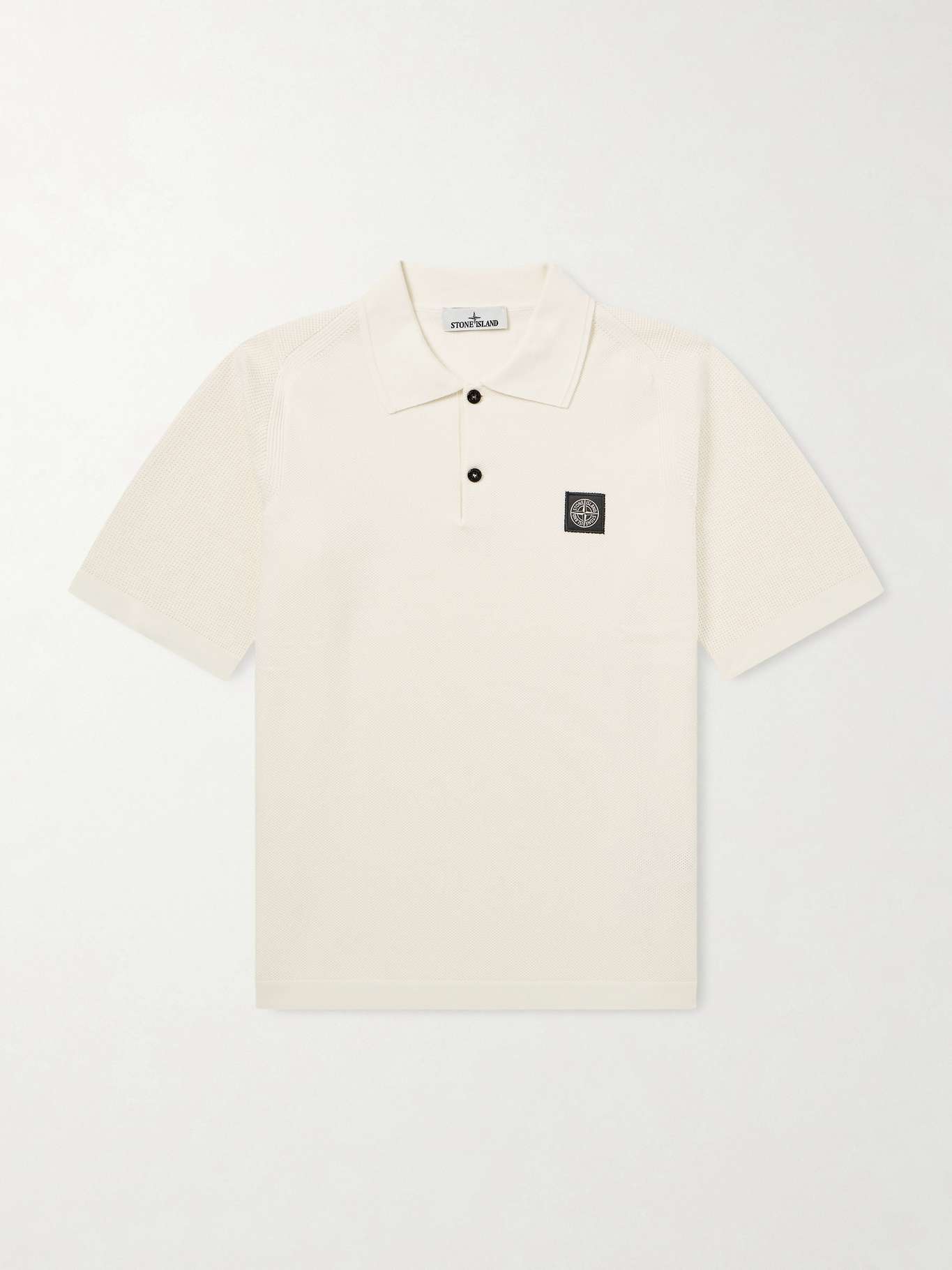 STONE ISLAND Logo-Appliquéd Waffle-Knit Cotton Polo Shirt