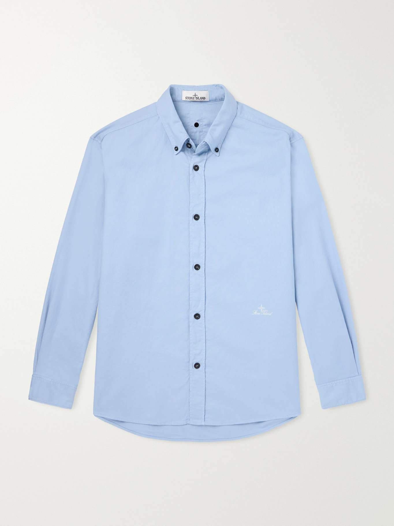 STONE ISLAND Button-Down Collar Logo-Embroidered Cotton Shirt